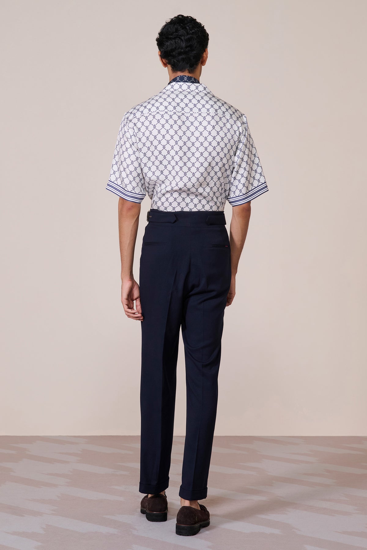 This printed shirt is meticulously tailored with unconventional design values. The shirt exudes SN vibes through its Adamas print and twill silk fabric. Pair it with SN Black Trouser for an effortless look.