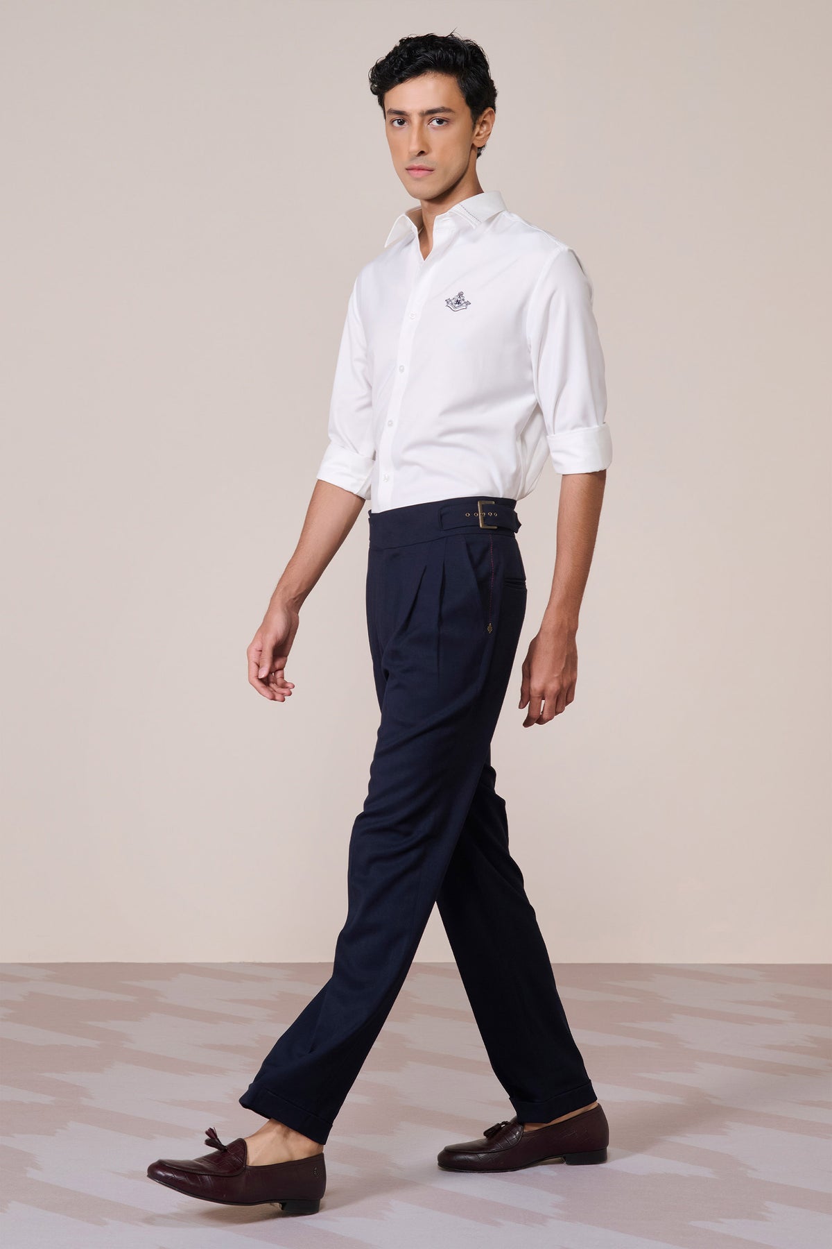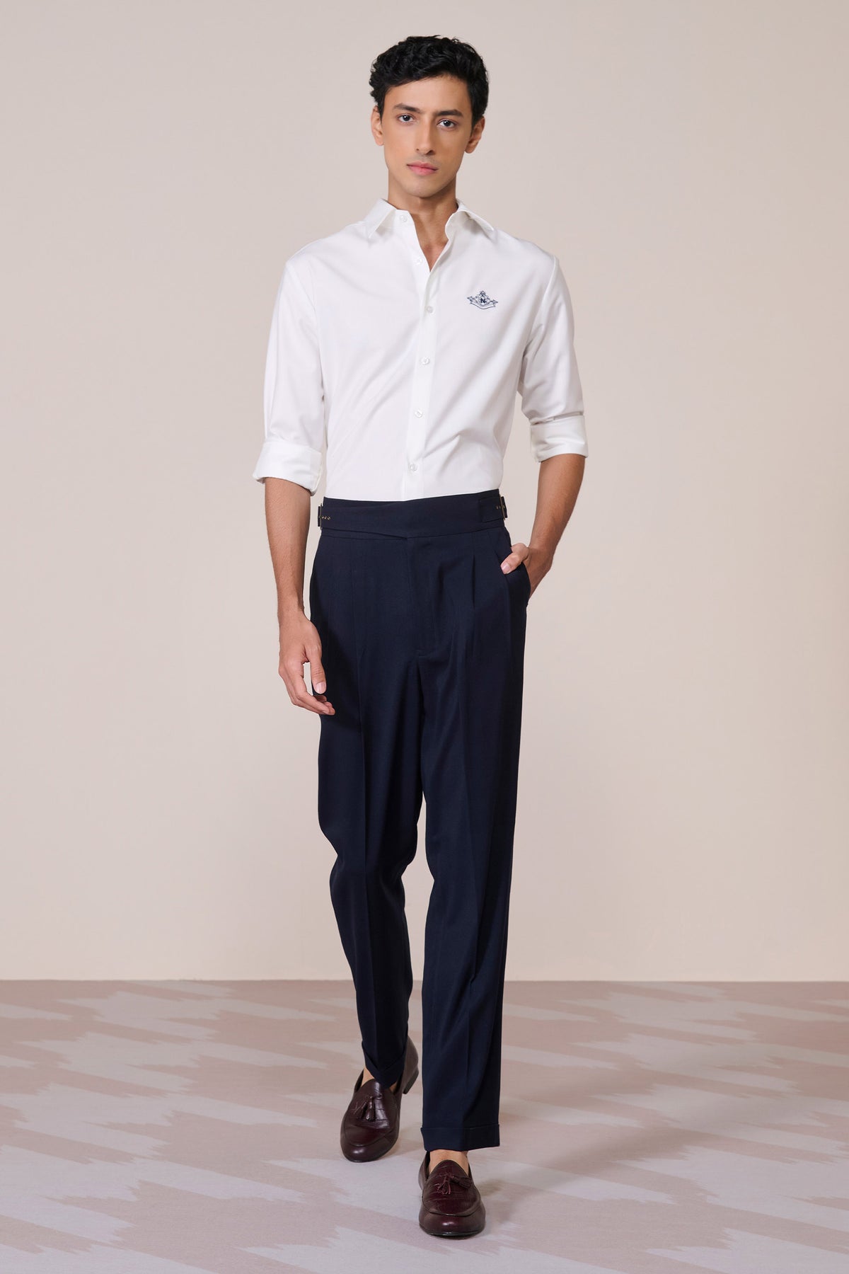 A must have classic off white shirt with embroidered crest for your everyday round the clock look.