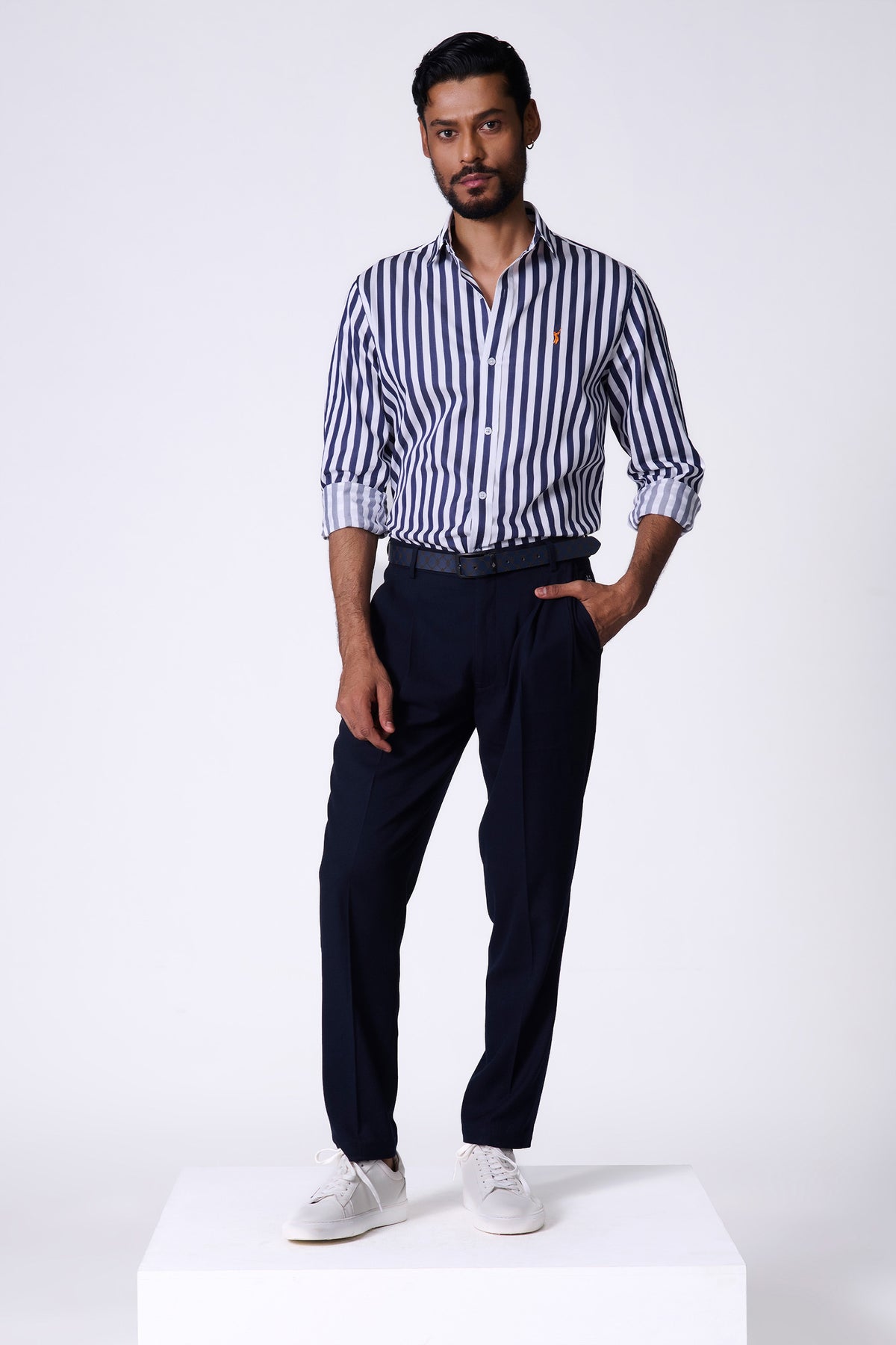 Shantanu & Nikhil Menswear SNCC Navy Striped Shirt with Batsman Logo indian designer wear online shopping melange singapore