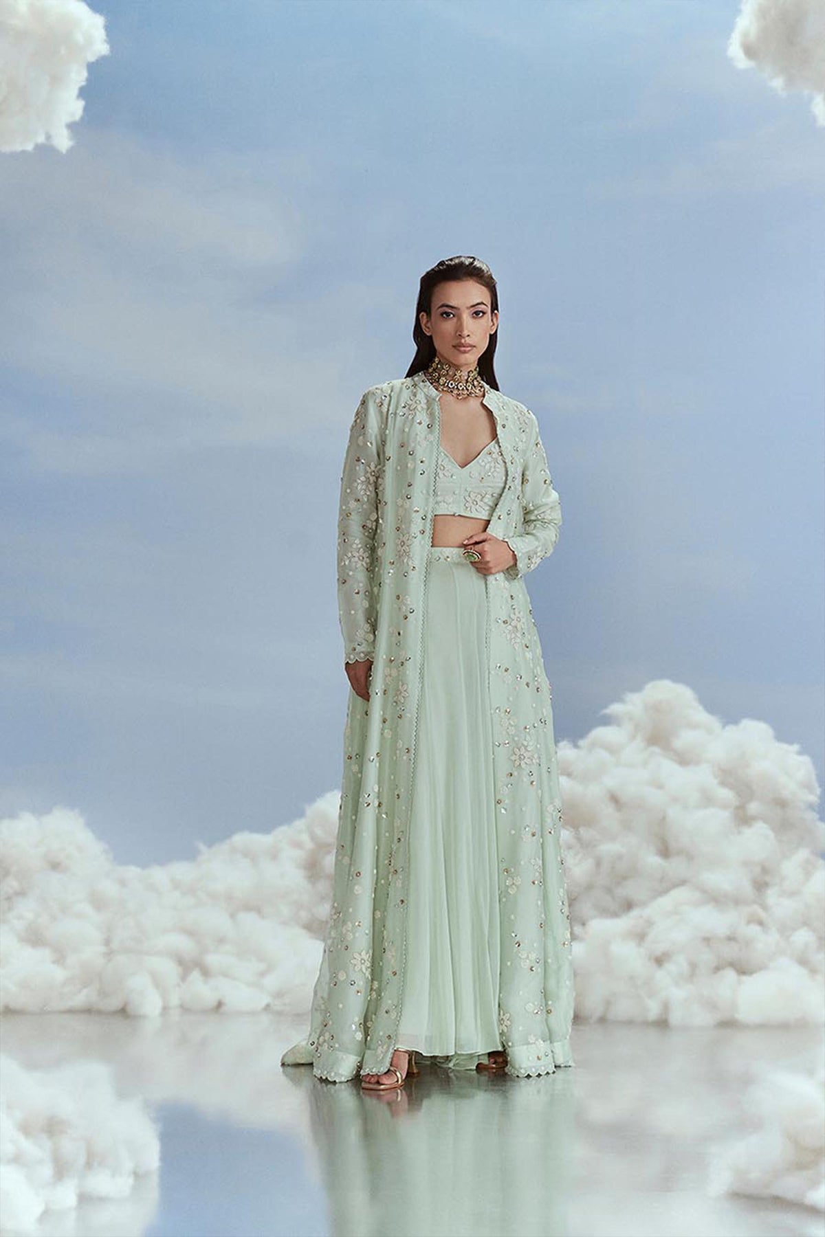 Fabric : Jacket - Organza With Tussar Lining; Top - Organza With Shantung Lining; Sharara - Georgette With Shantung Lining