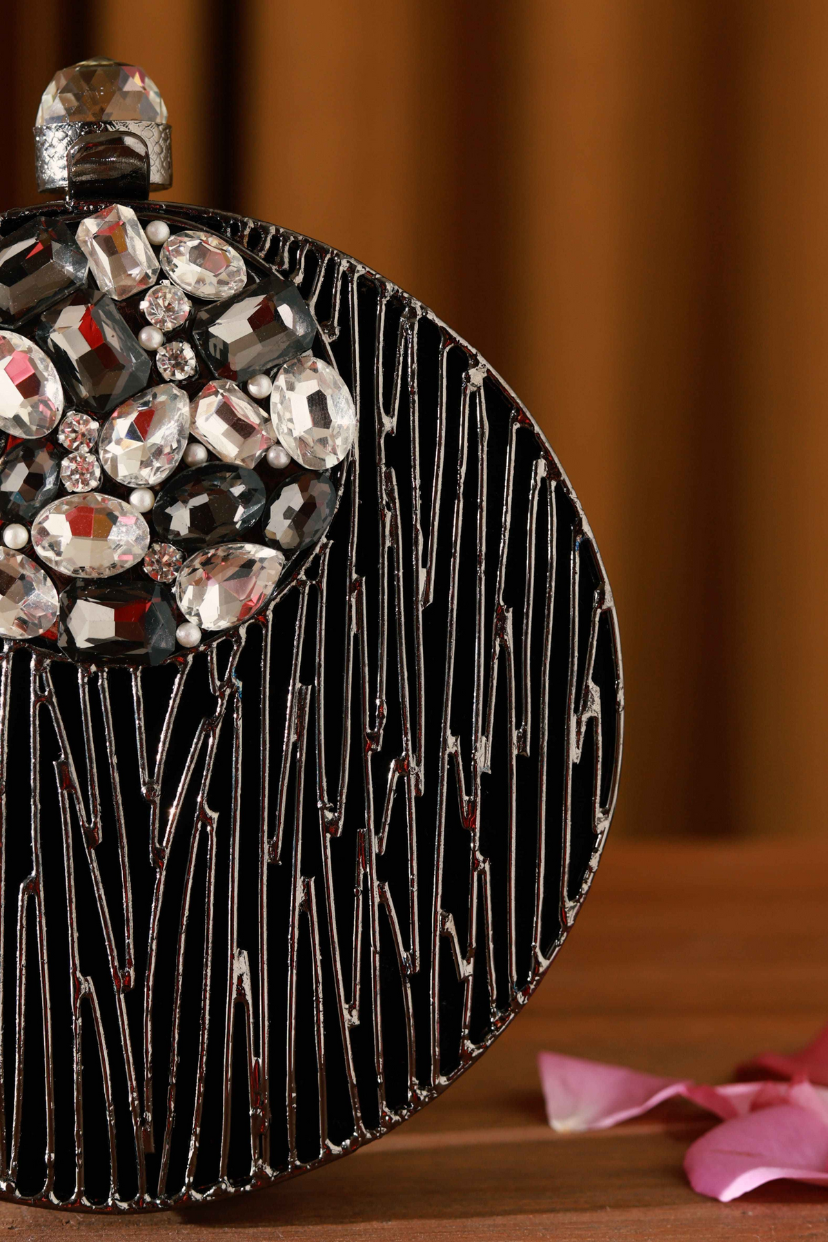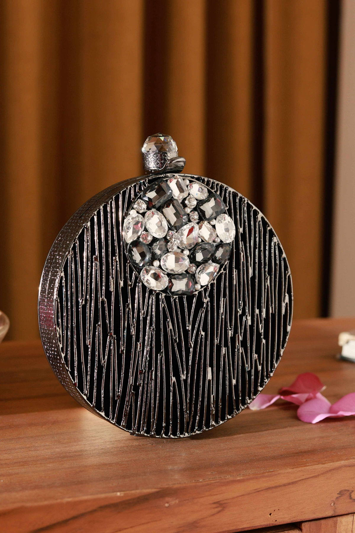 The Tan Clan Aashna Round Embellished Brass Clutch Black Womenswear Online Shopping Melange Singapore Gifting