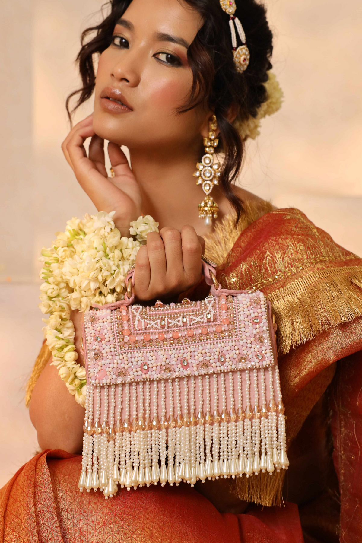 The Tan Clan Kiara Pink Flap Over Bag with Handle Womenswear Indian Designer Wear Melange Singapore Online Shopping