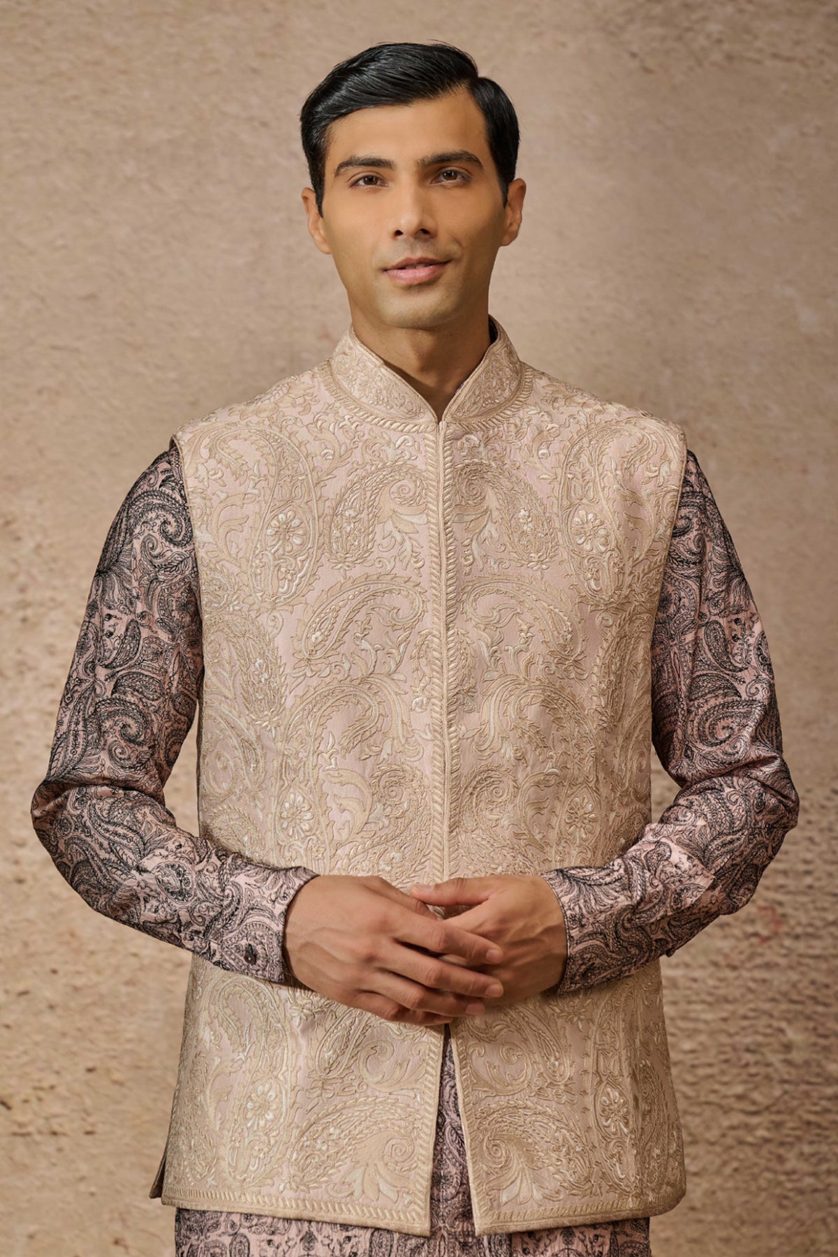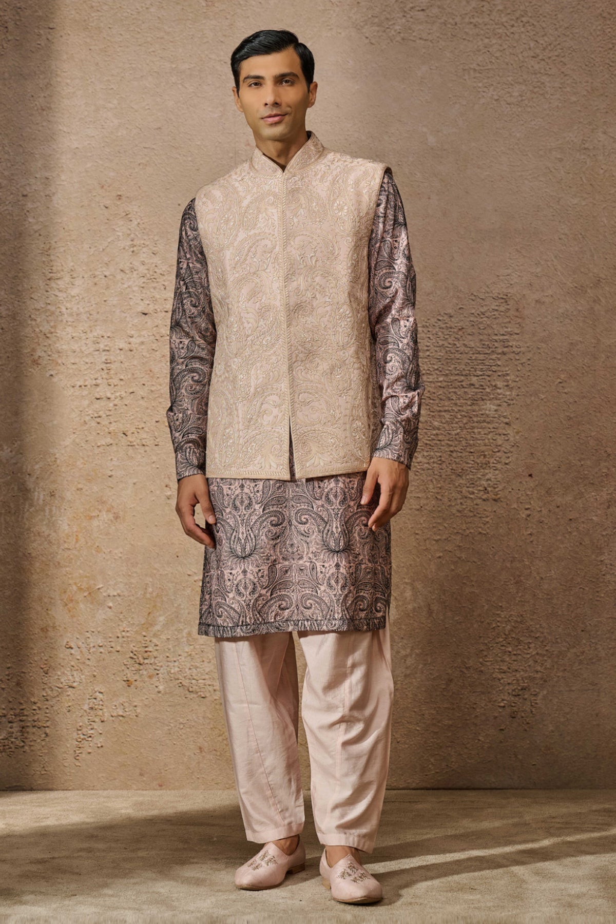 Tarun Tahiliani Menswear Embroidered Waistcoat Set Salmon indian designer wear online shopping melange singapore