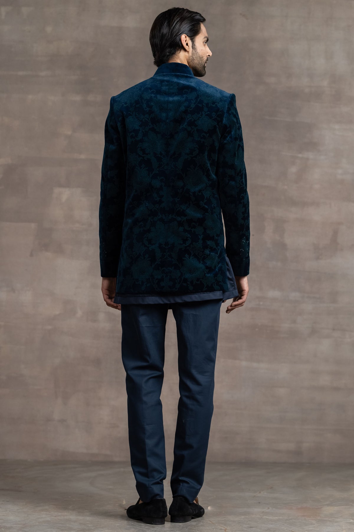Etched Velvet Sherwani With Swarovski Detailing
