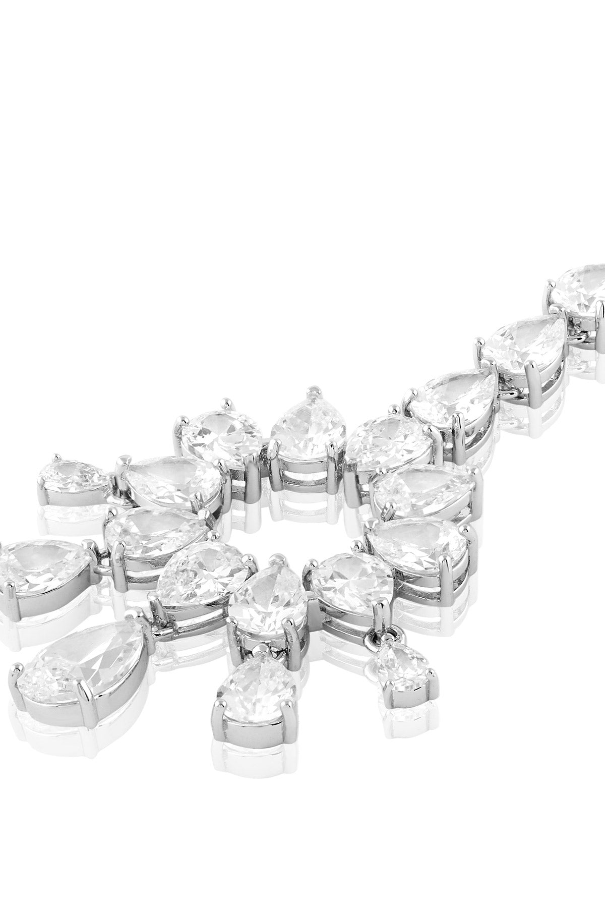 The celestial radiance maangtikka is the ultimate statement piece for the modern woman. Crafted with high-quality crystal zirconia stones and rhodium-plated brass, this elegant accessory radiates timeless luxury. Perfect for weddings, festive occasions, and cocktail parties.