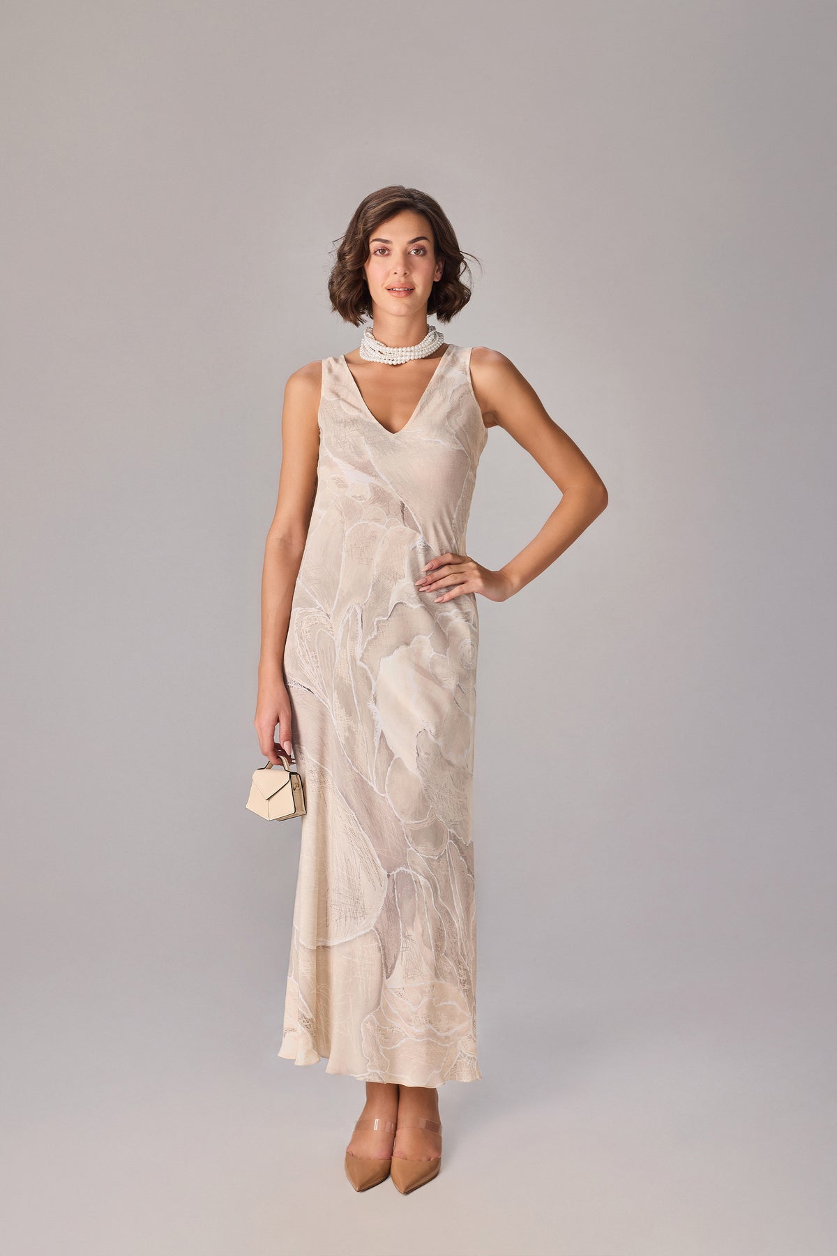 Abstract floral print column dress