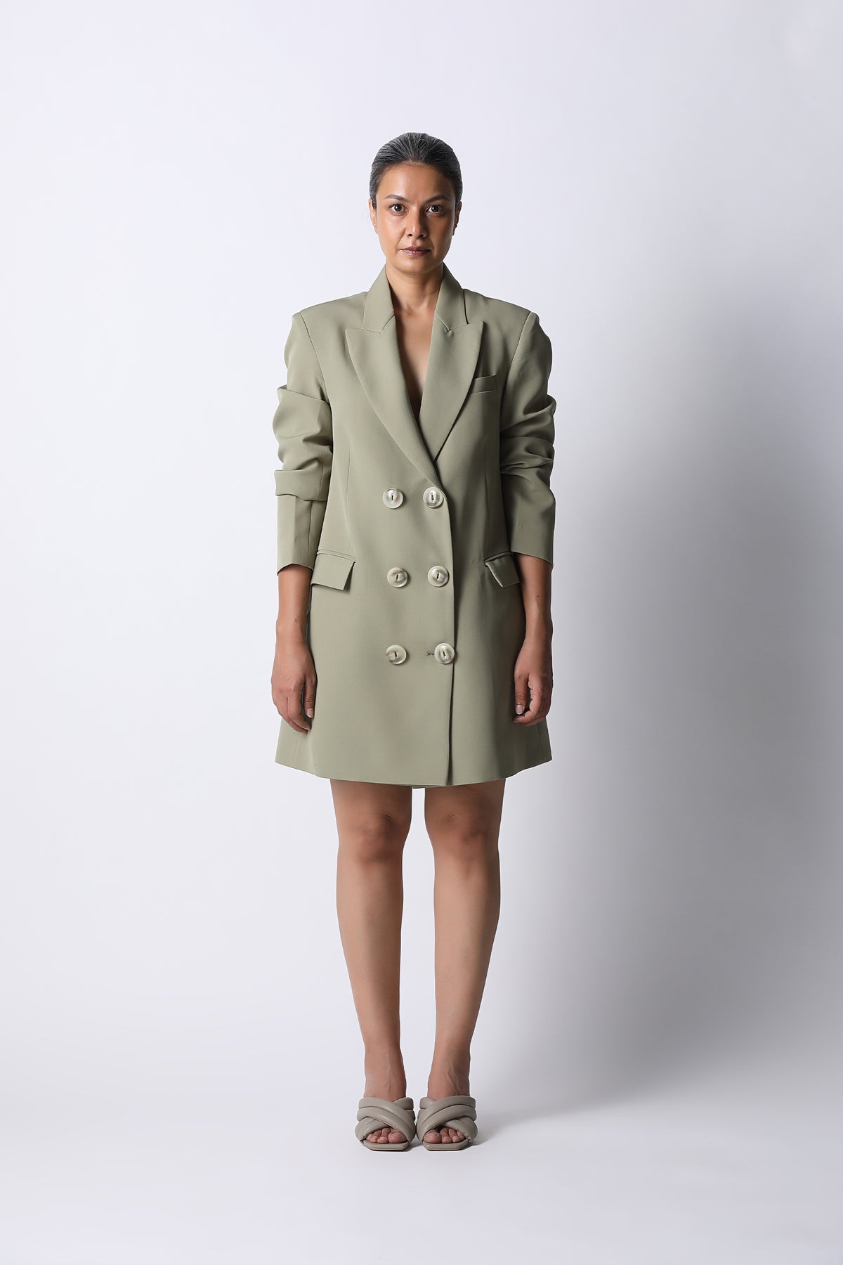 The pedro dress combines a sense of refined gracefulness and a contemporary appeal. Crafted to a double-breasted silhouette, the piece is imagined in a above knee length, notched lapels and pockets. Style it up with a pair of heels or boots or go easy with sneakers.
