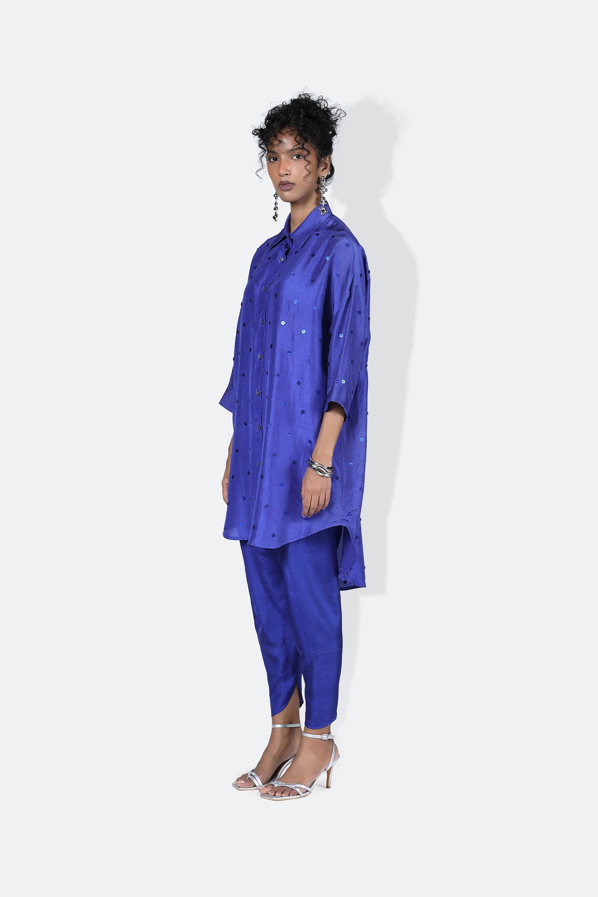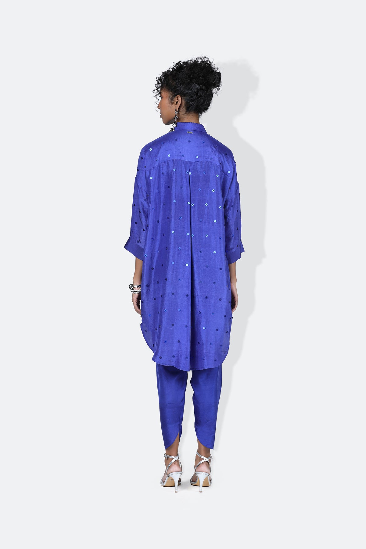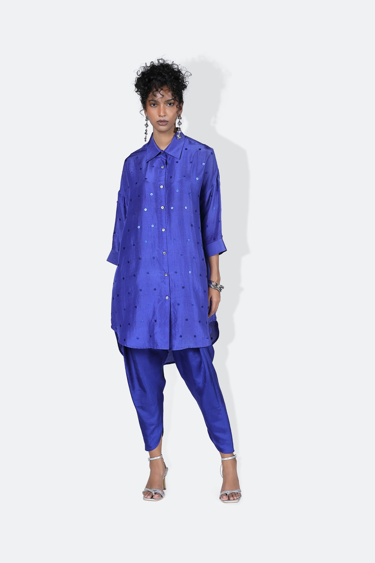 A classic button-up, the lady bug shirt is a favorite with its effortless ease. Scattered with hand embroidered sequins all over, the shirt is mid thigh length and has 3/4th sleeves. Our definition of a seasonless shirt.