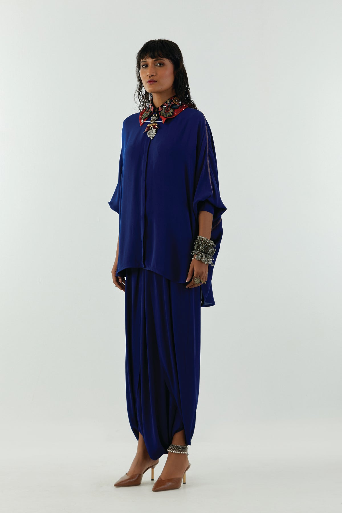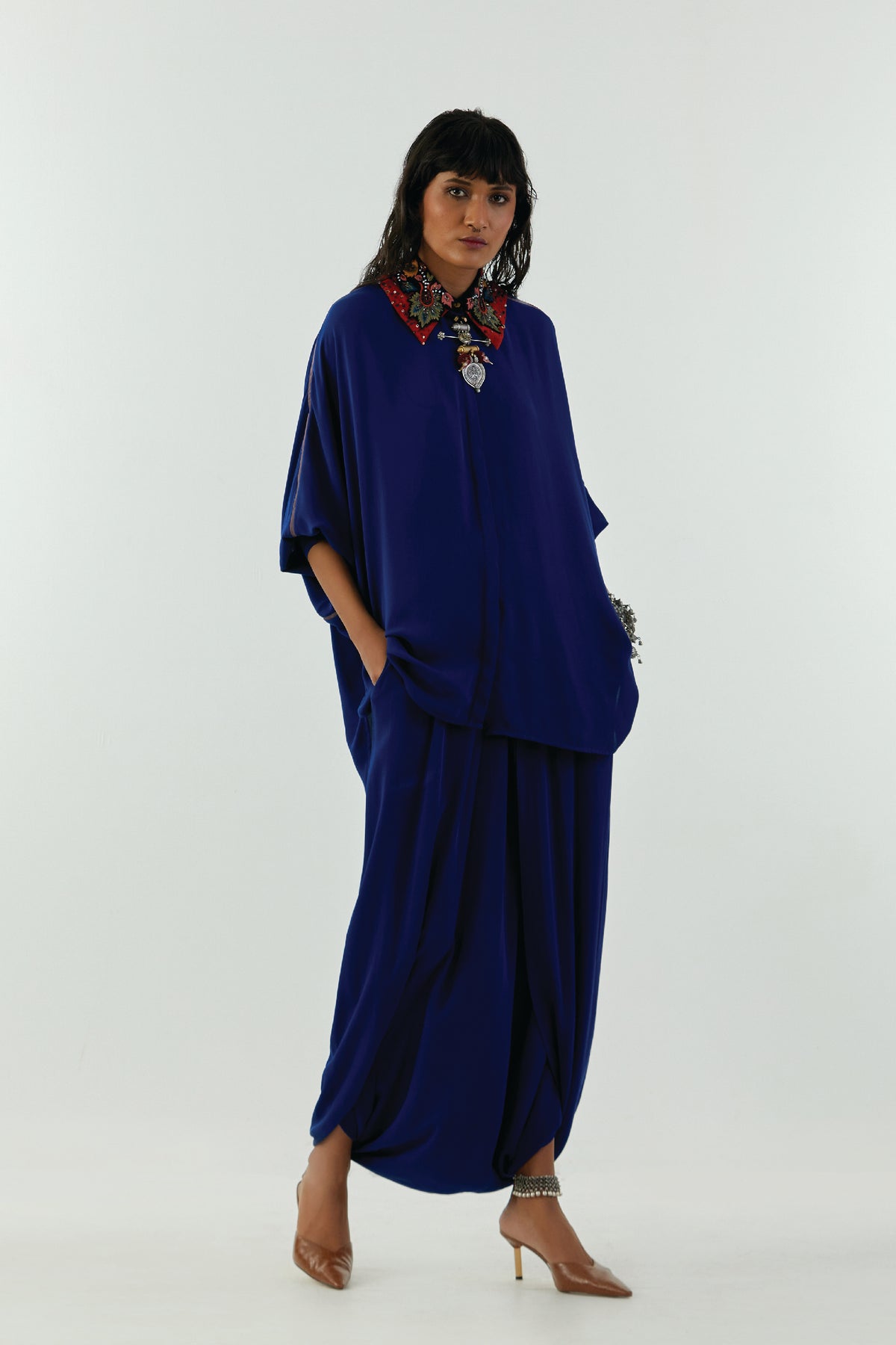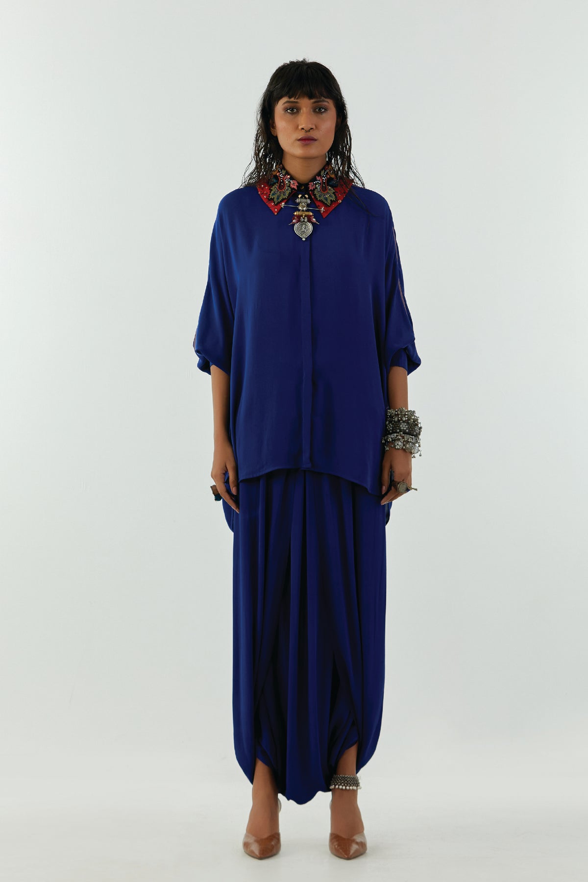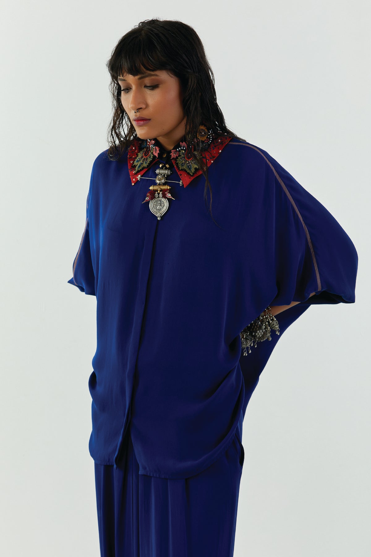 Mandala shirt with embroidered collar.