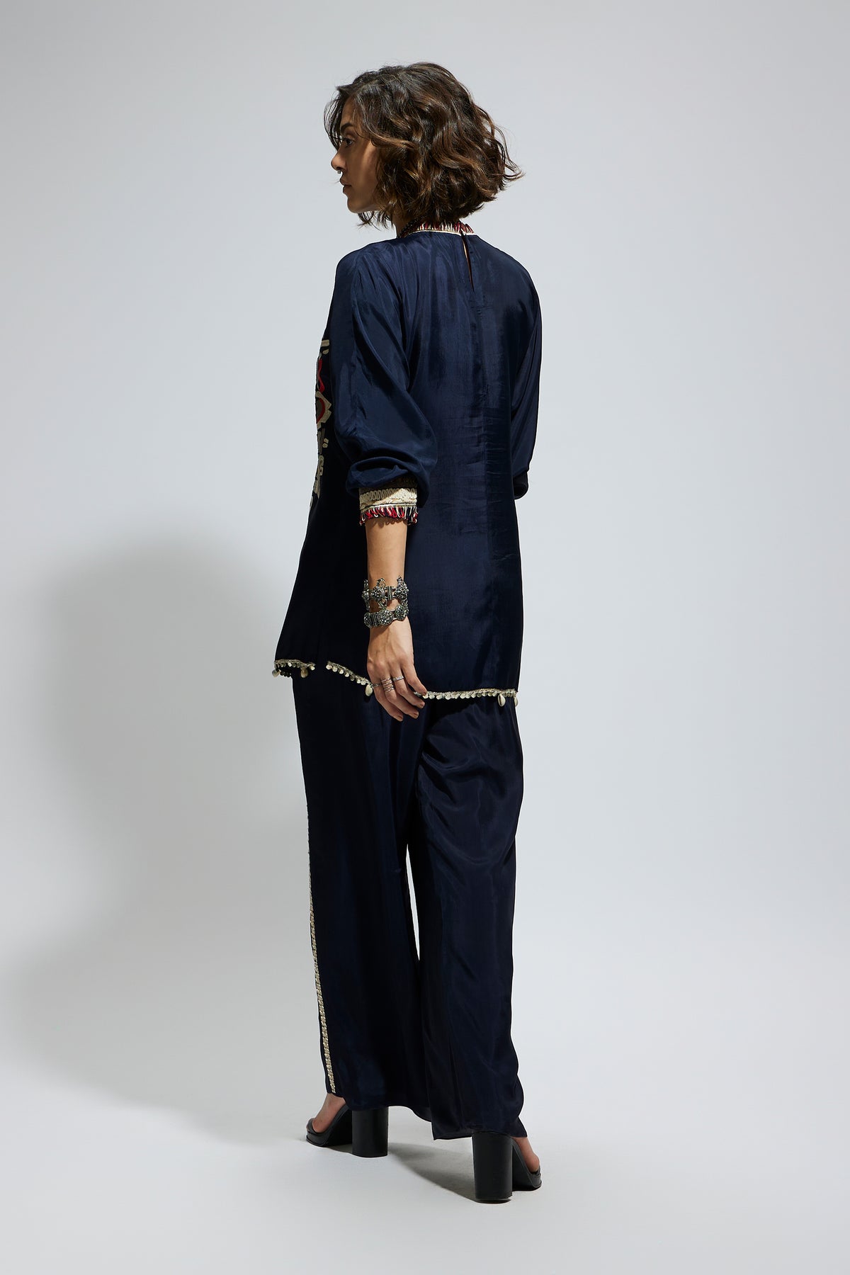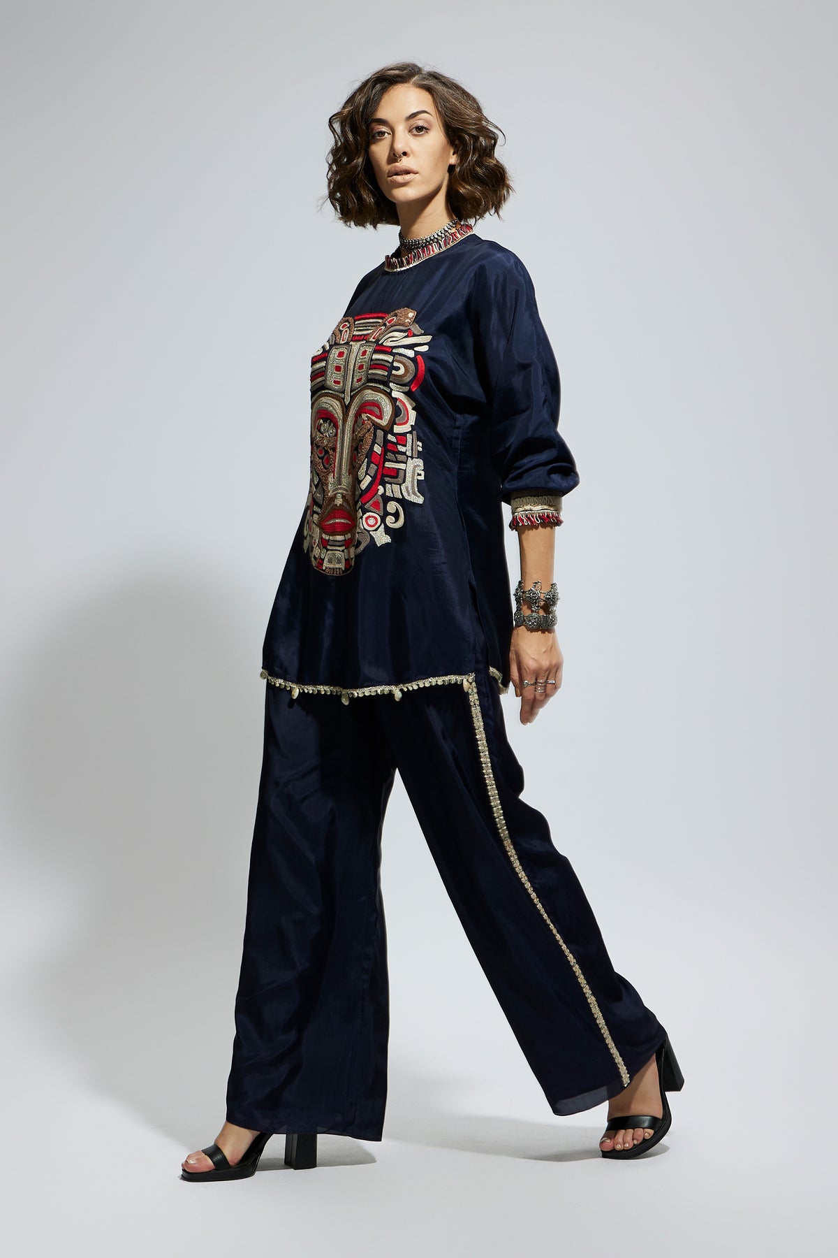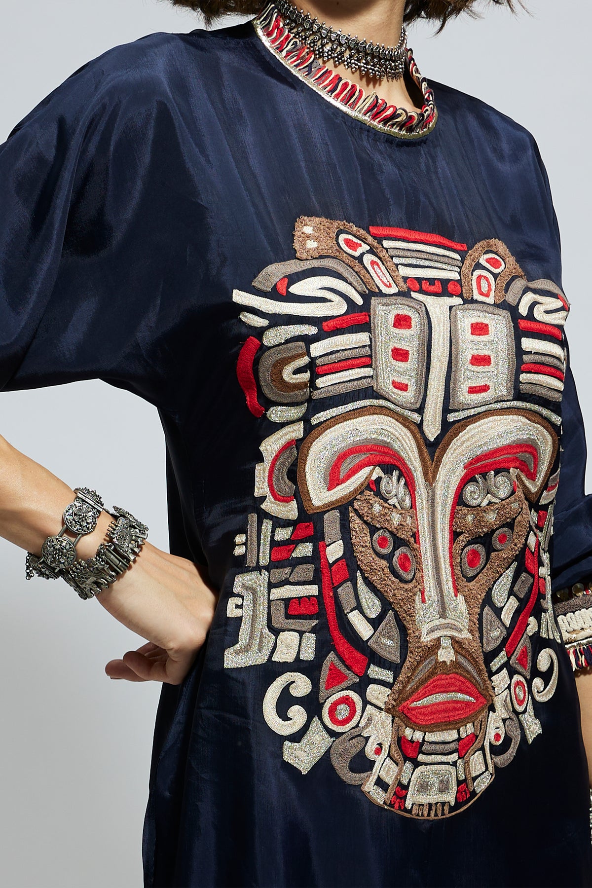 Blue embellished mask threadwork tunic set