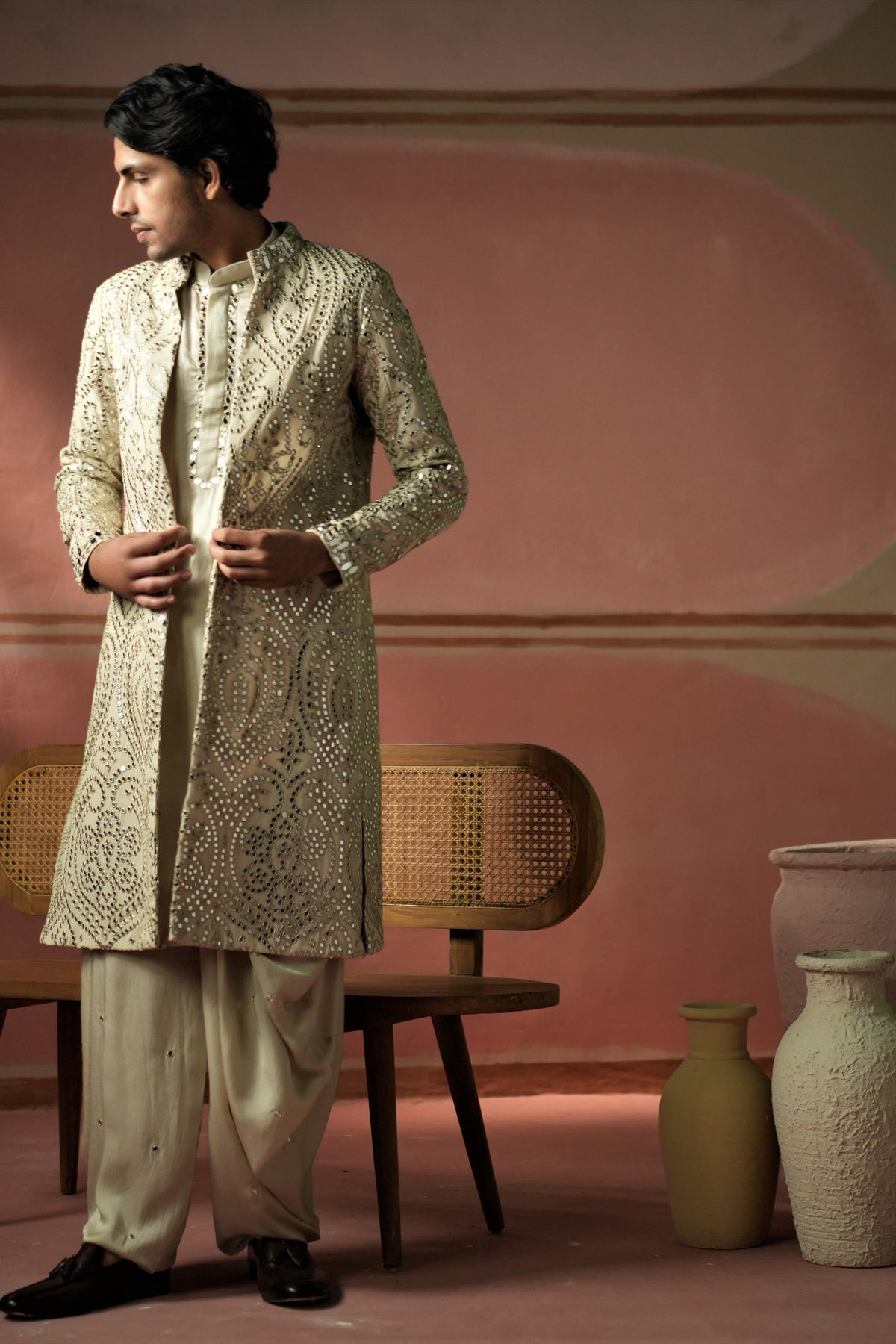 Twenty Nine Ecru Cowl Dhoti with Silver Zari Mirror Spread indian designer wear online shopping melange singapor