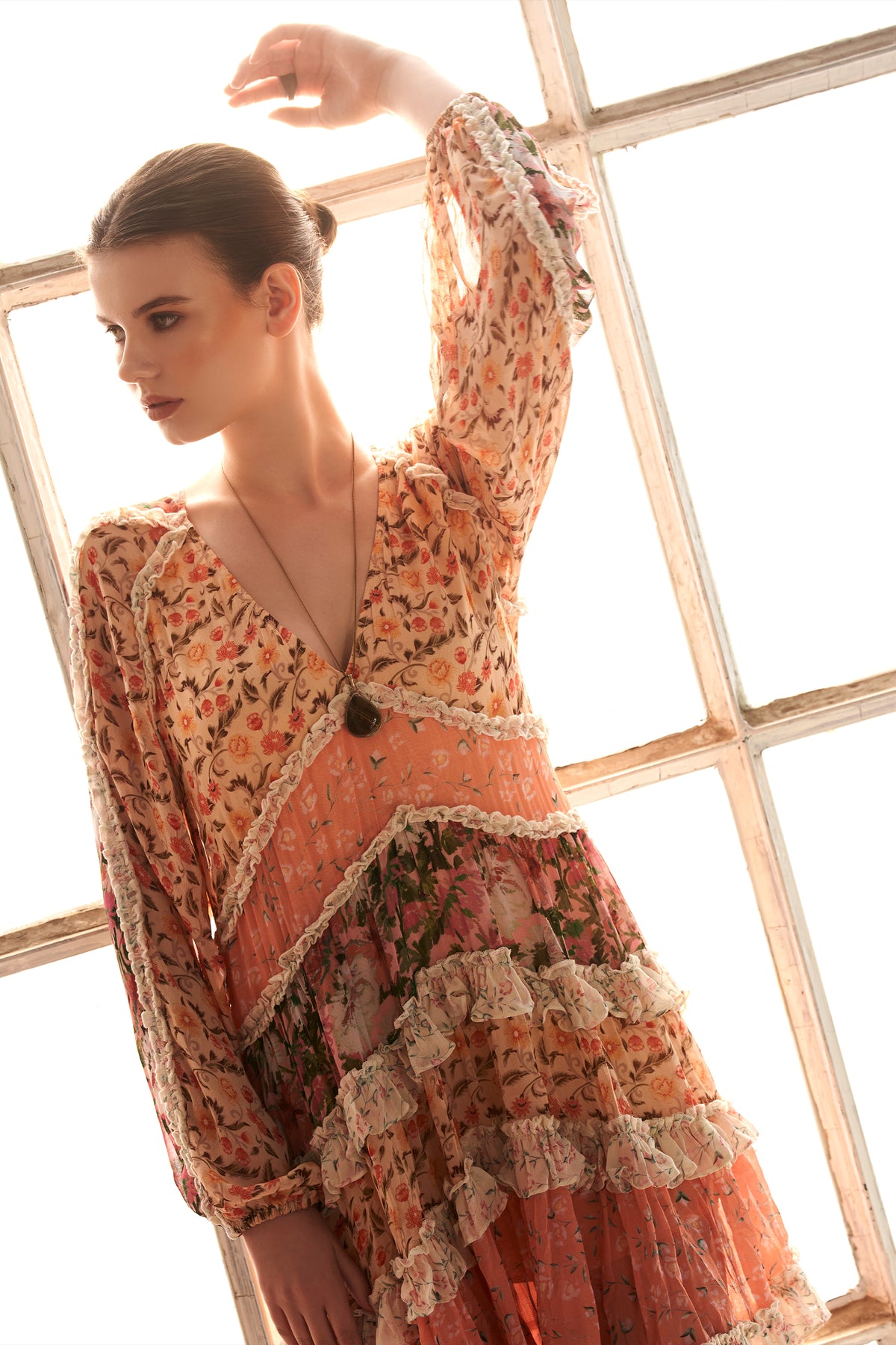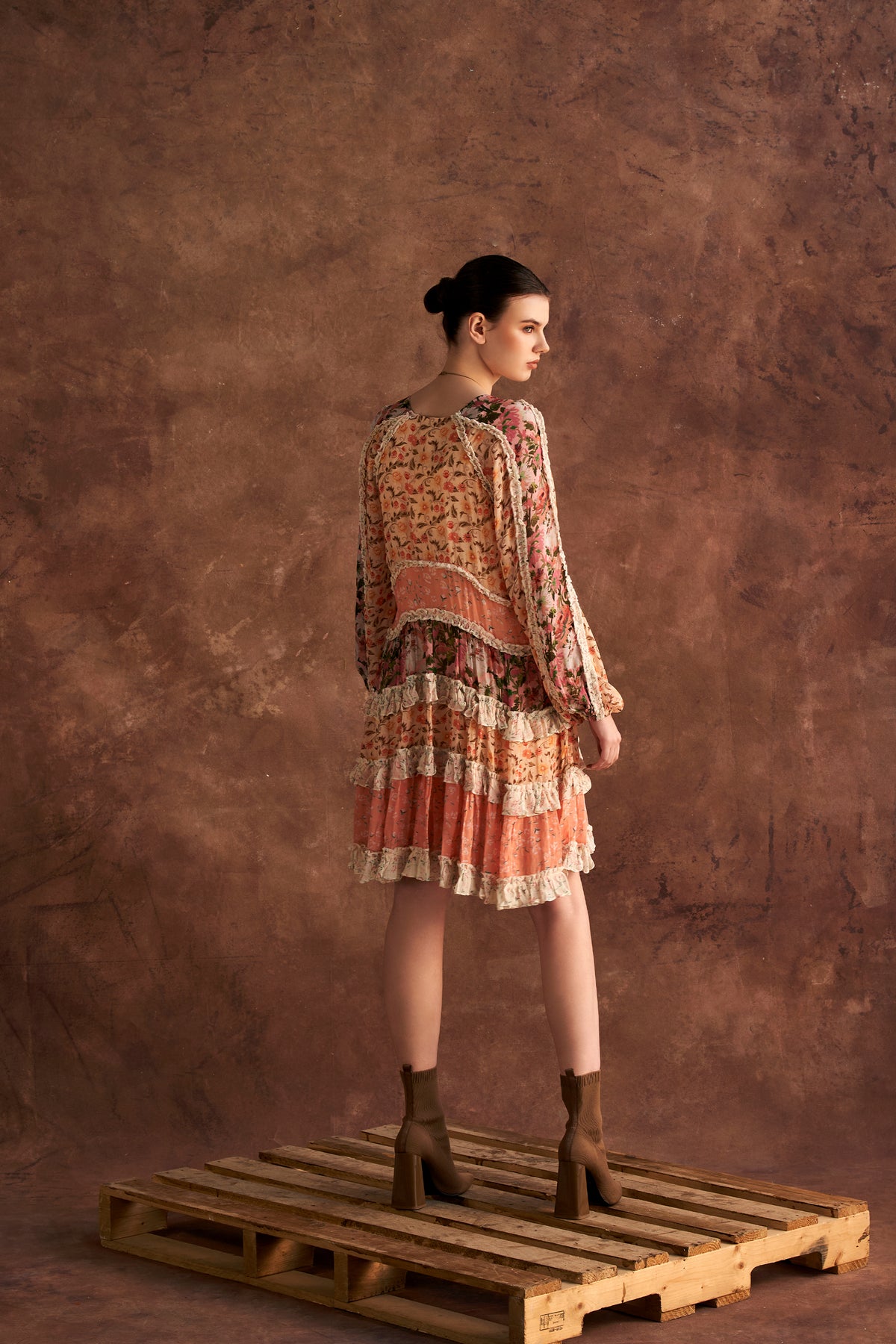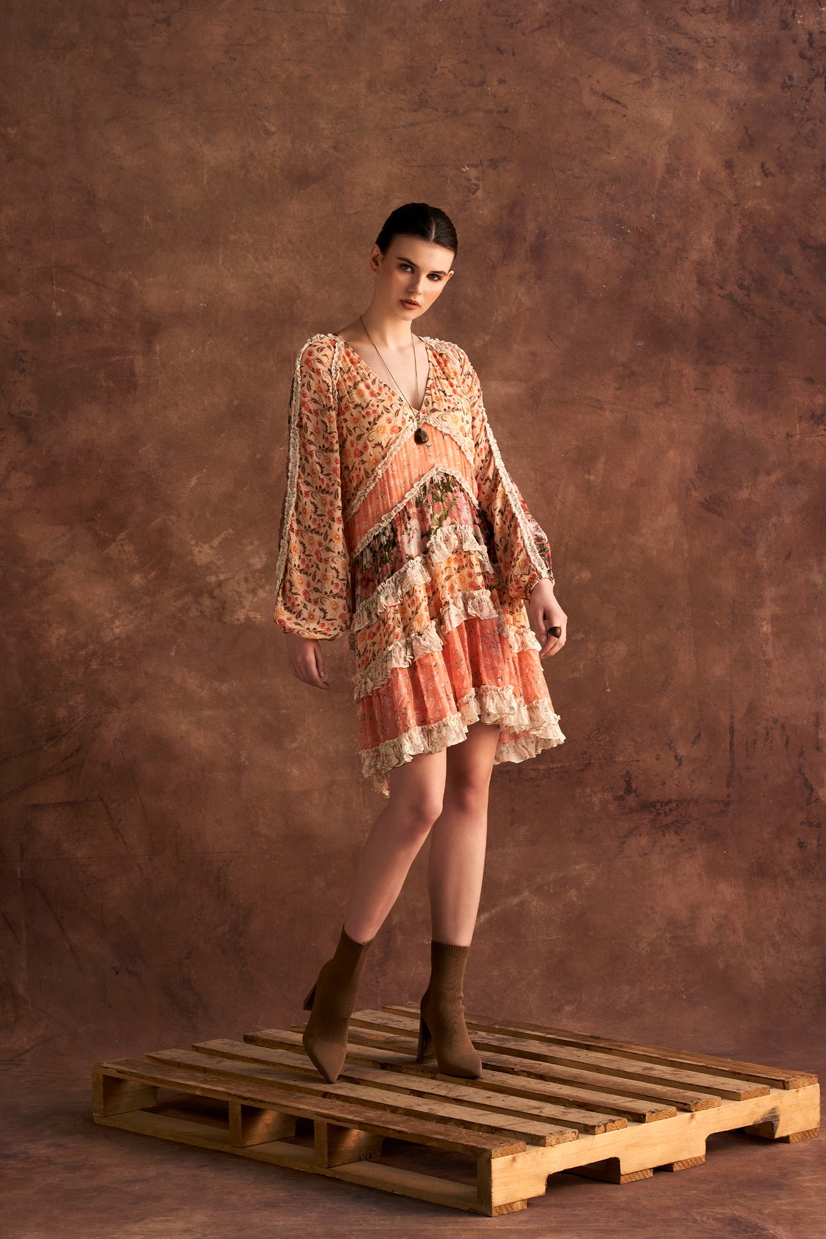 Multi printed ruffle mini swing dress