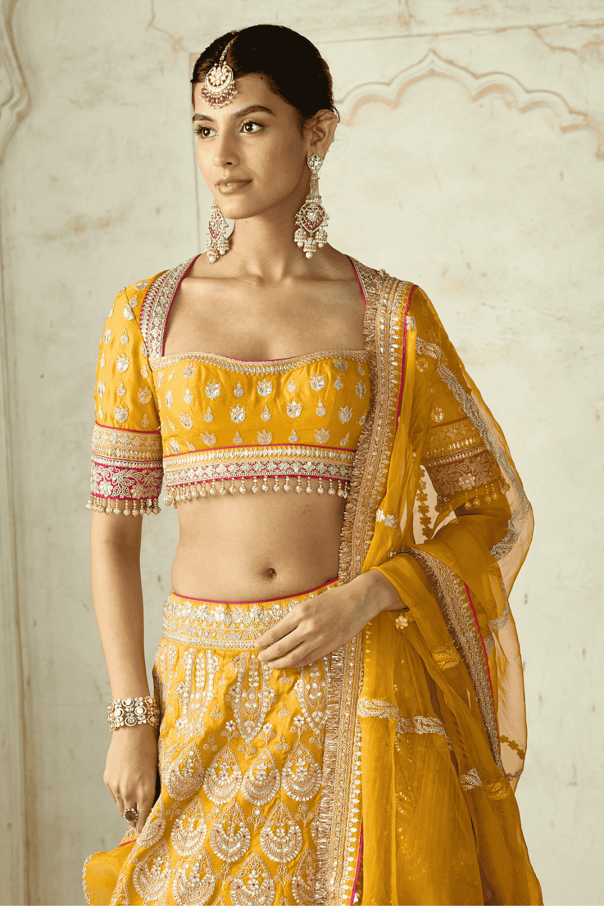 Fabric: Blouse & Lehenga-Tussar, Dupatta-Organza