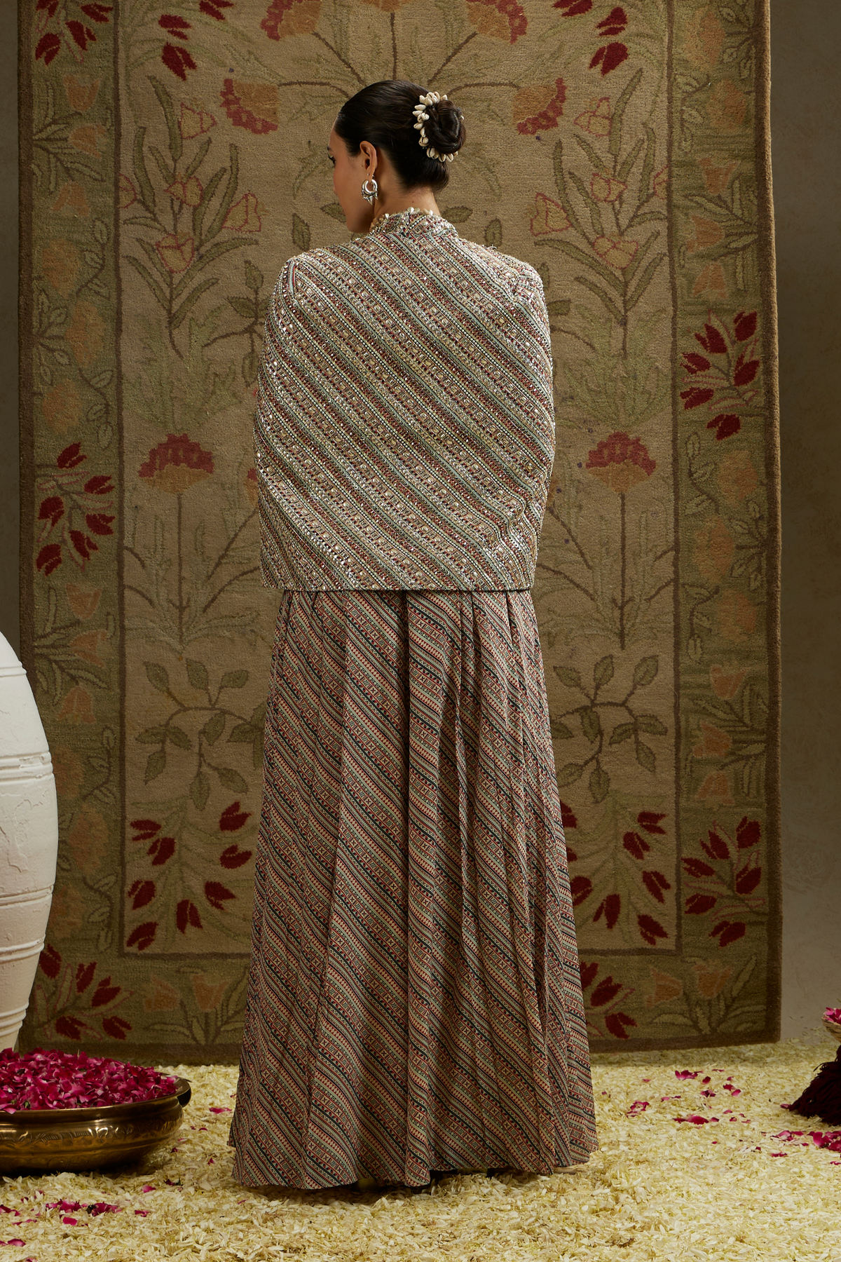 SVA Womenswear Biege Boho Stripe Noor Jacket Set Indian Designer Wear Online Shopping Melange Singapore