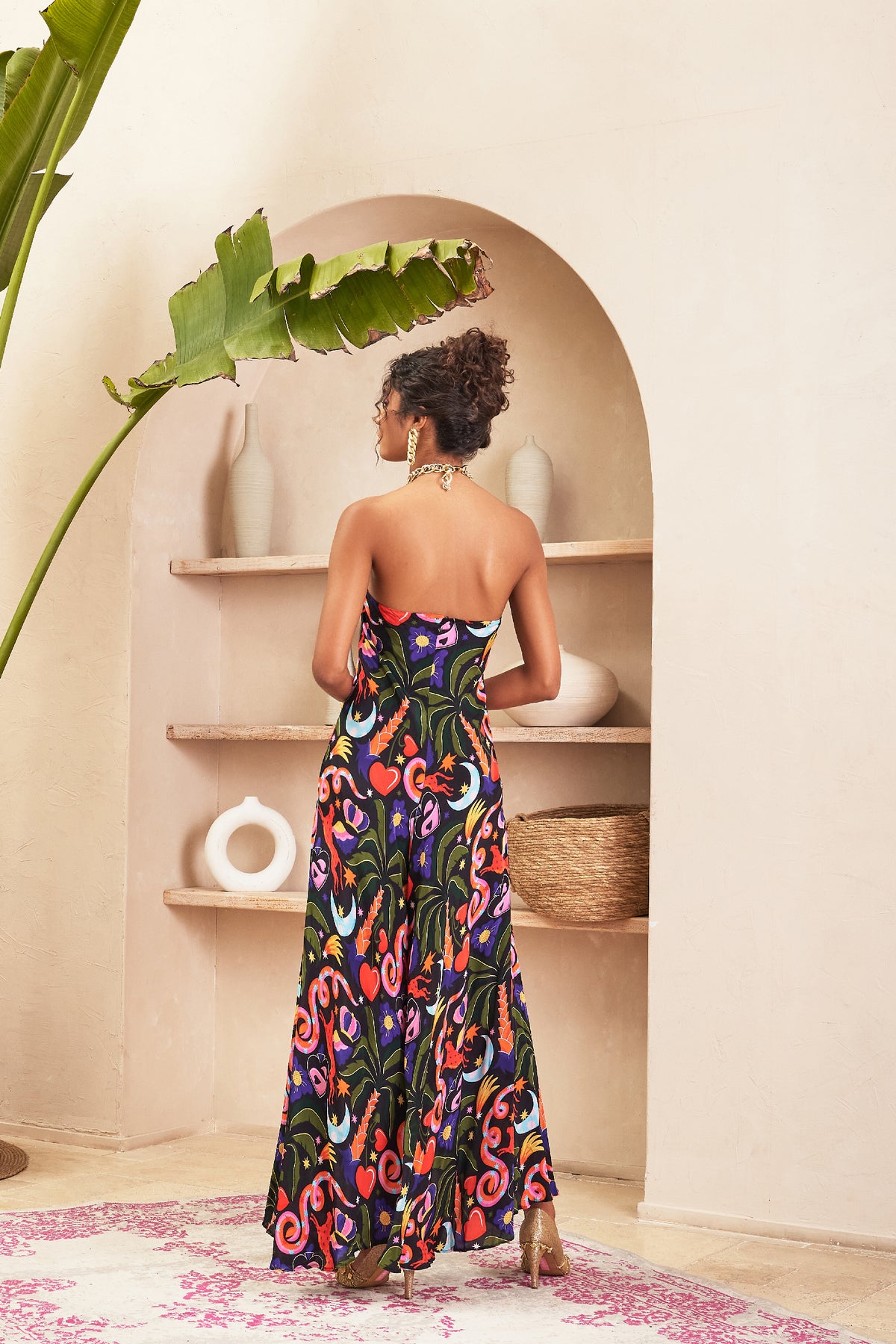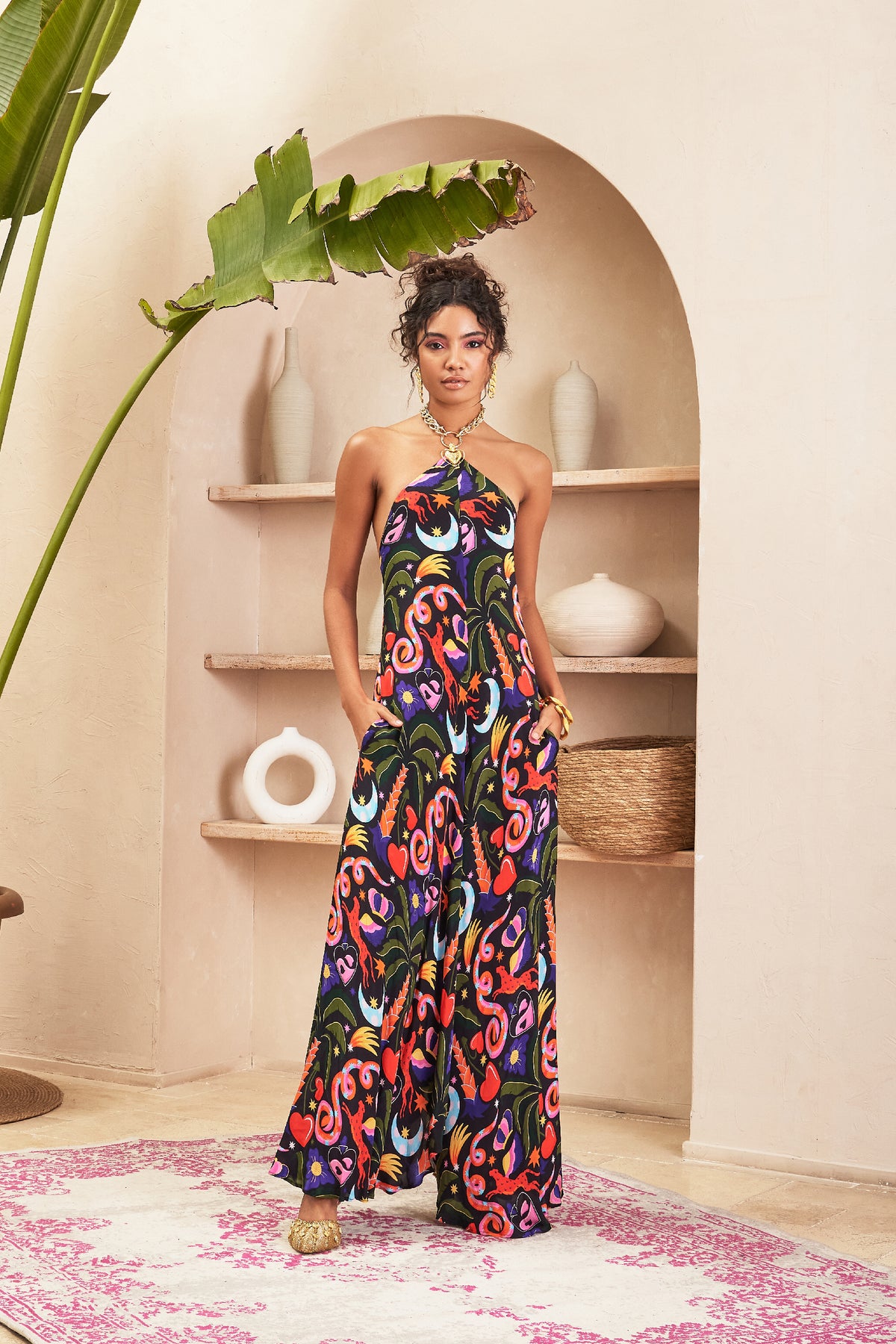 Unleash your bold style with our jumpsuit featuring a chic chain link and an embellished pdp heart detail at the neck. This trendy design seamlessly combines fashion-forward elements with a touch of sophistication, making it a statement piece for any occasion. Elevate your wardrobe with this unique jumpsuit that effortlessly merges contemporary aesthetics and subtle elegance.