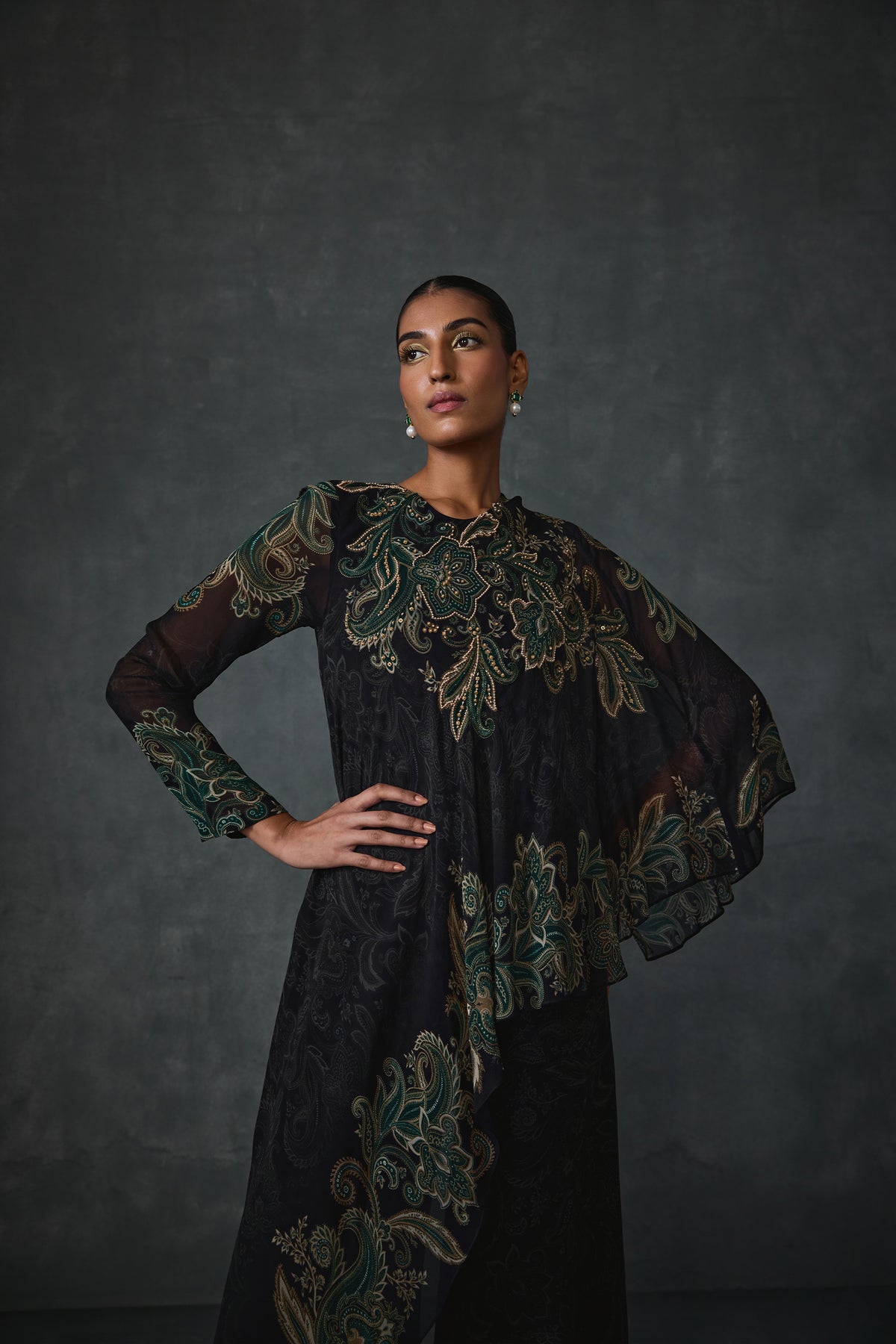 Paisley cape style jumpsuit