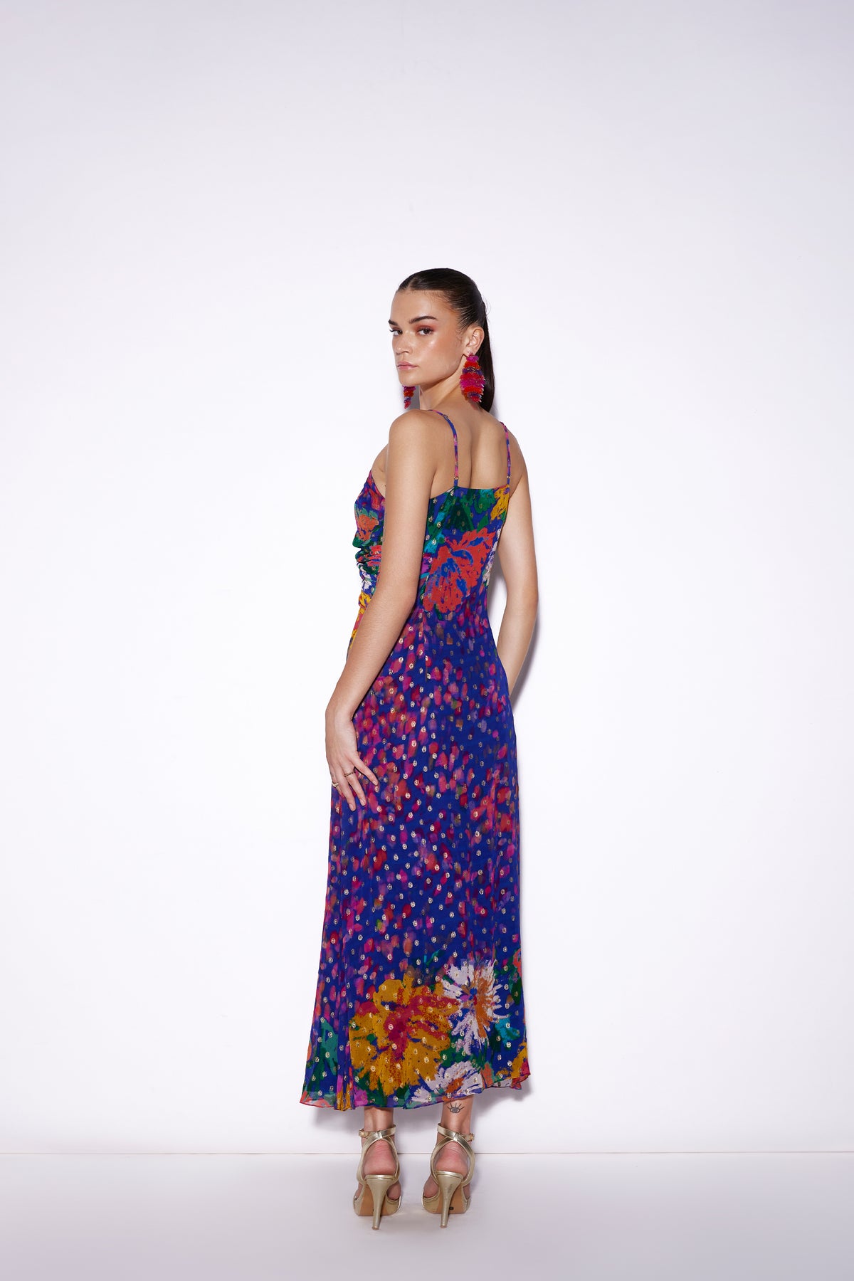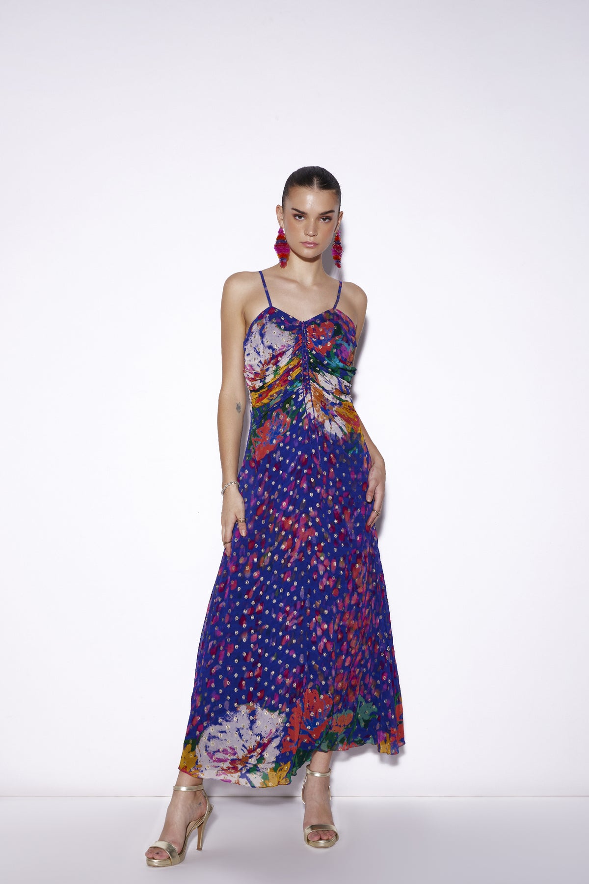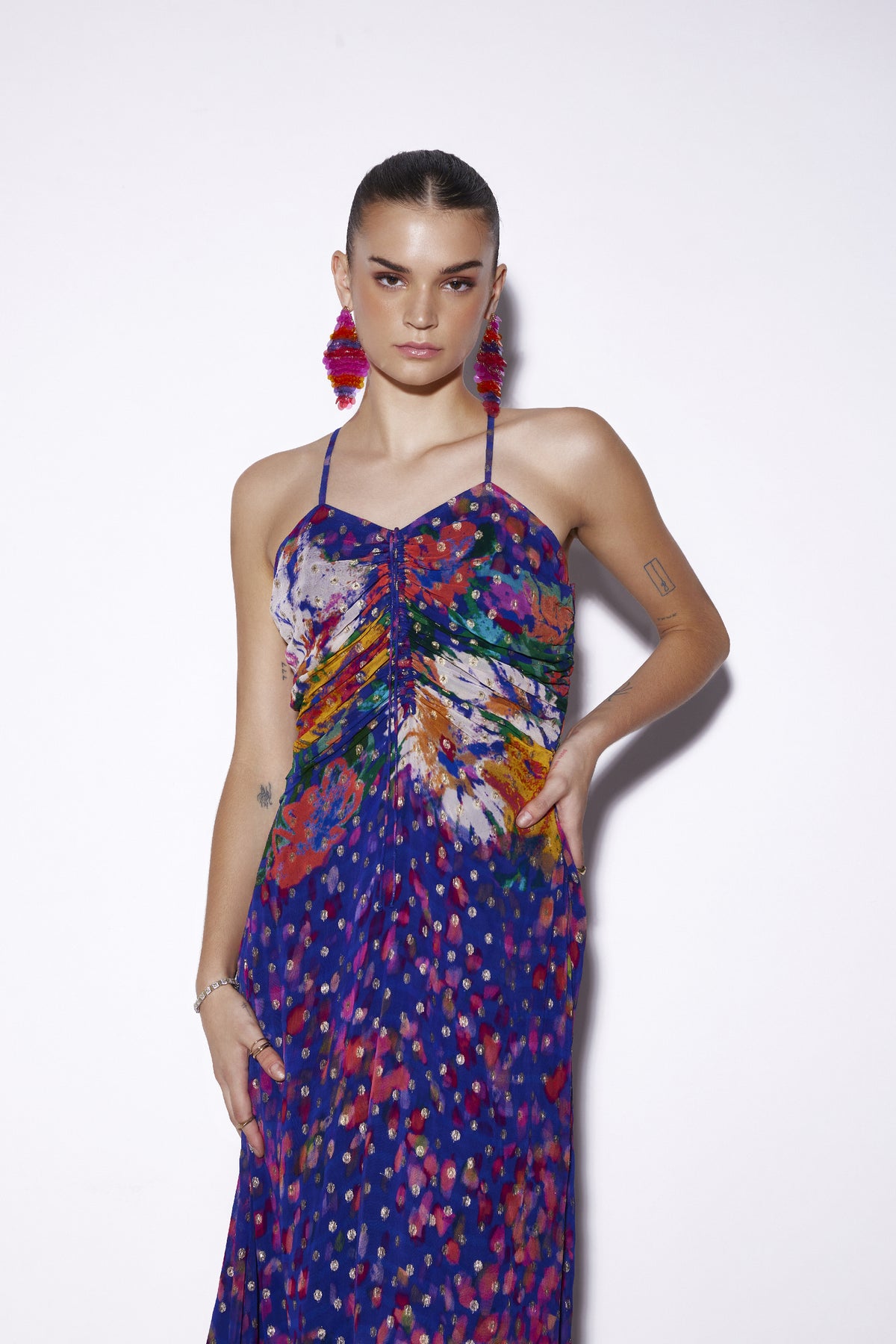 Ruched jacquard spaghetti dress