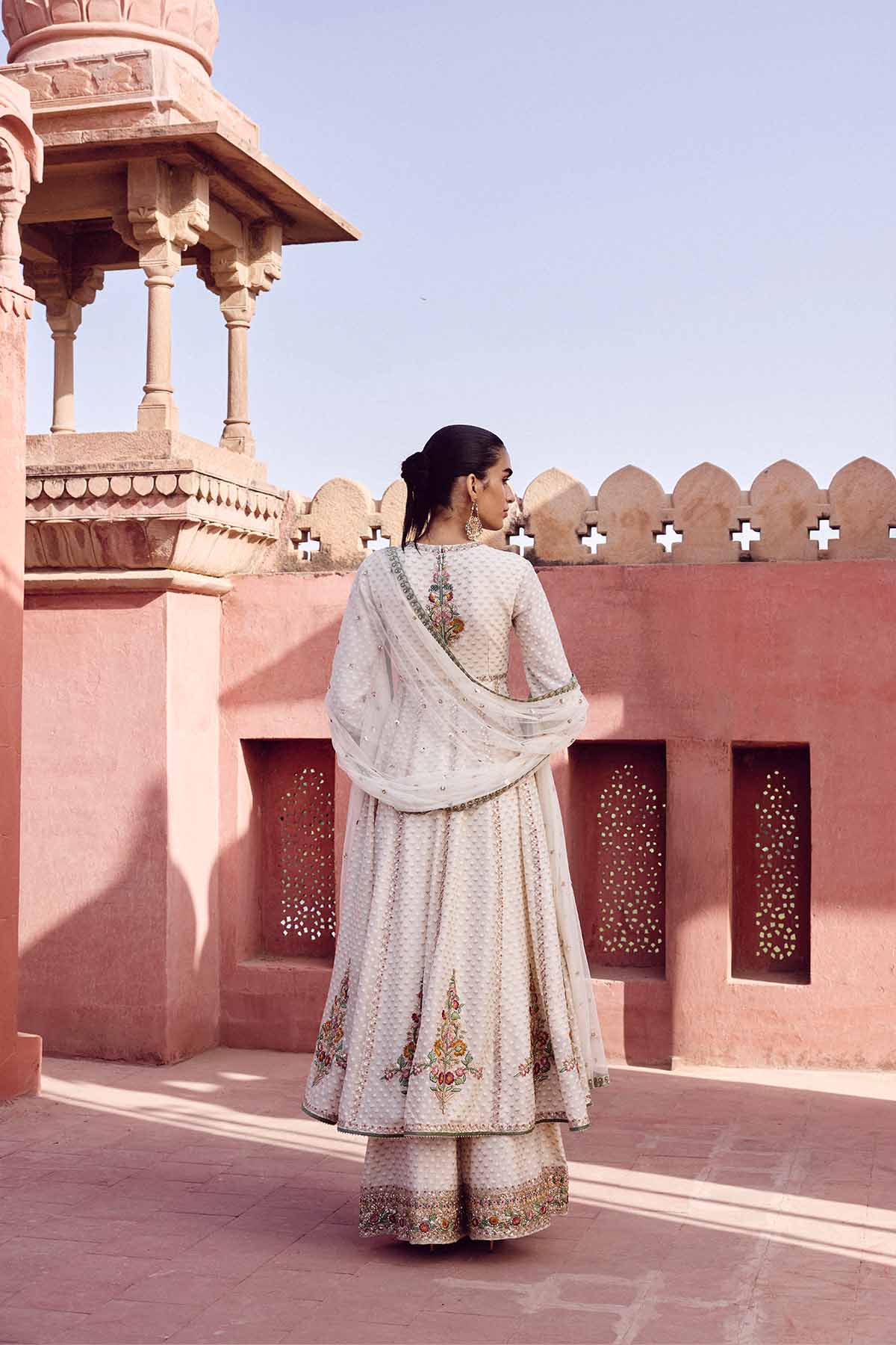 Fabric: Anarakli & Pant - Benaras Kora Cotton Butti, Dup - Soft Net, Lining - 100% Cotton