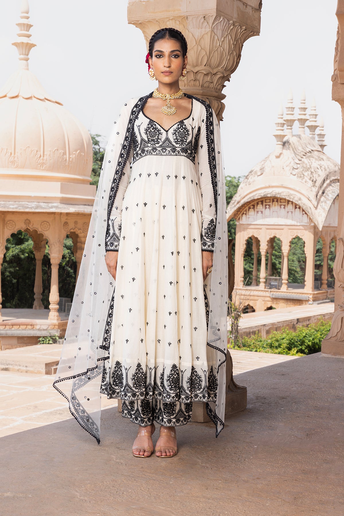 Fabric: Anarkali & Pants: Cotton Mulmal, Dupatta: Tule/Soft Net