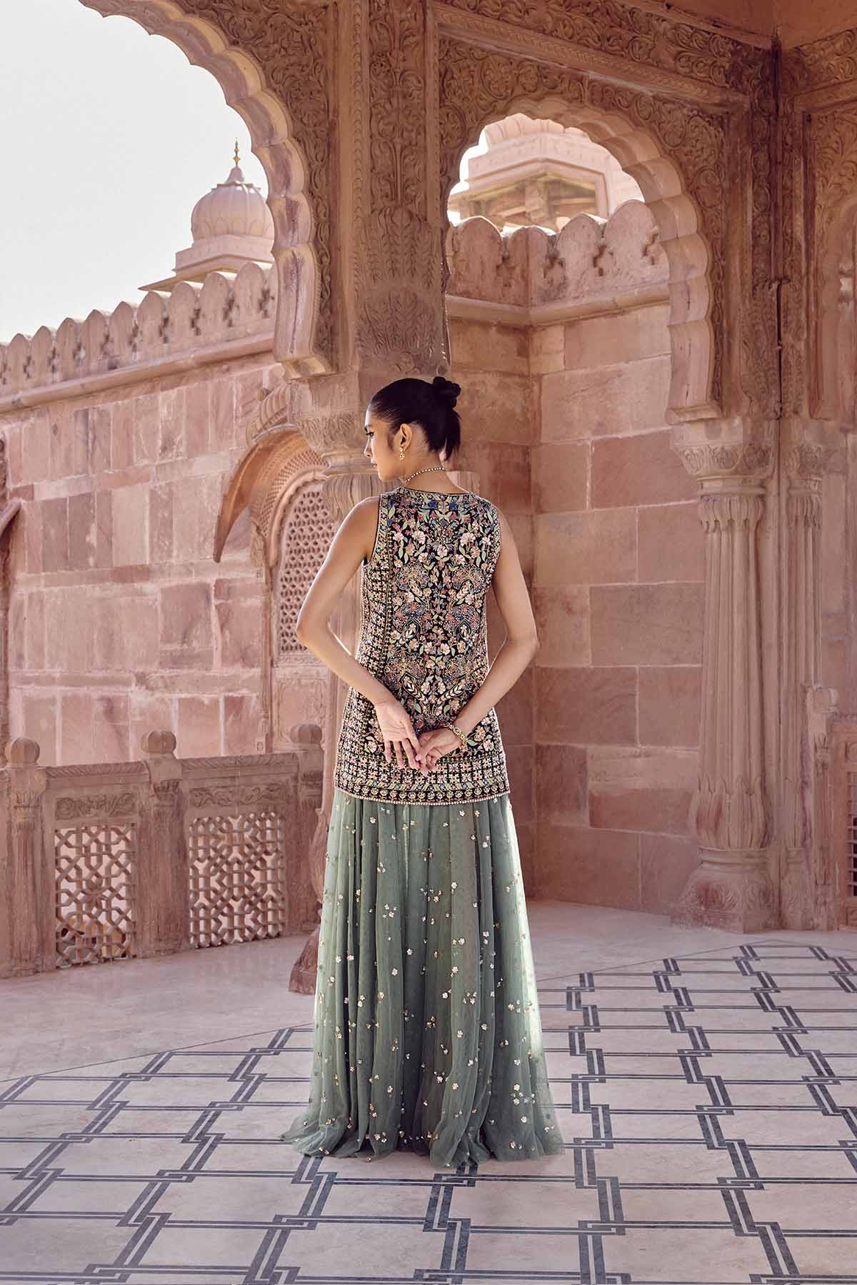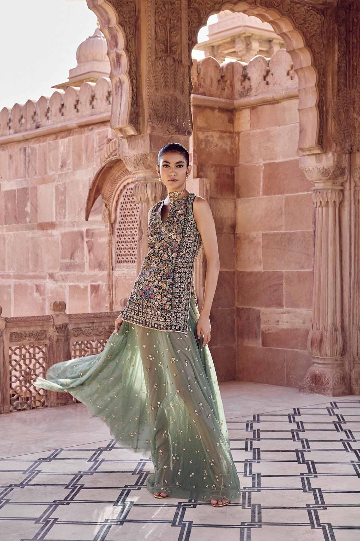 Anita Dongre Floresta Embroidered Skirt Set Sage indian designer wear online shopping melange singapore