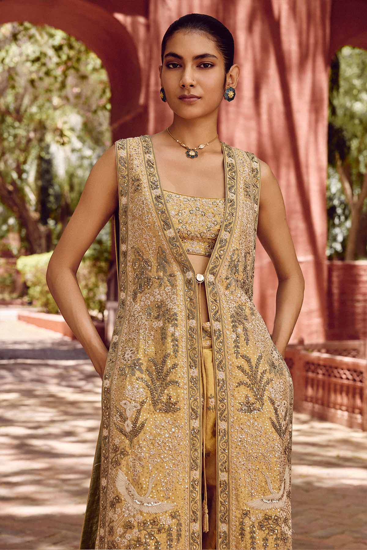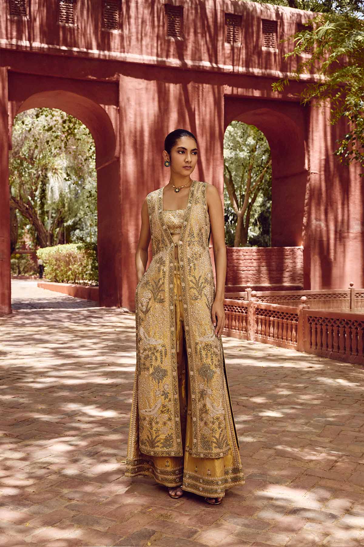 Anita Dongre Ikshita Embroidered Silk Tabard Set Gold indian designer wear online shopping melange singapore