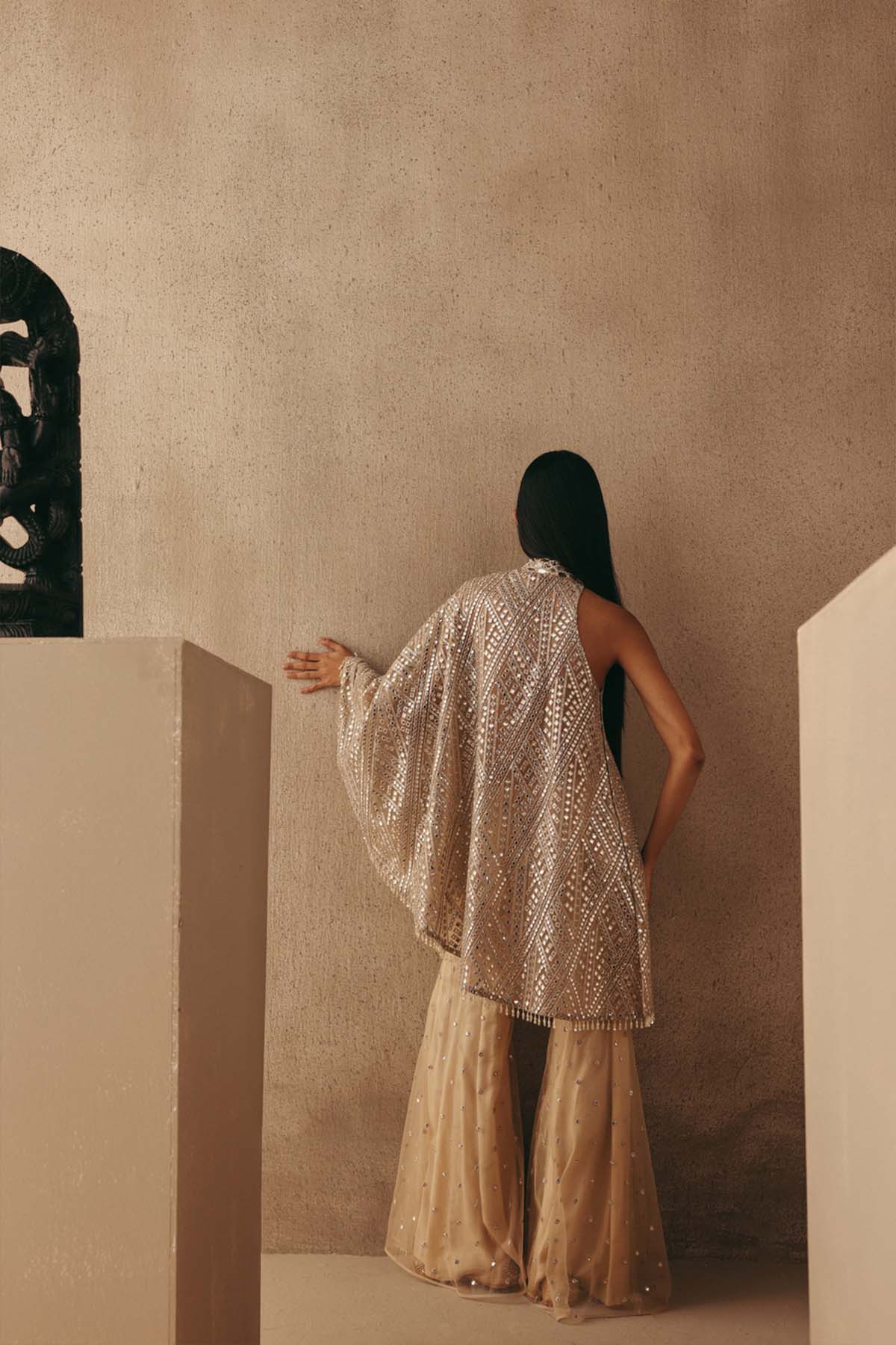 Twenty Nine Mirrorwork Bootcut Pants Natural Indian designer wear online shopping melange singapore
