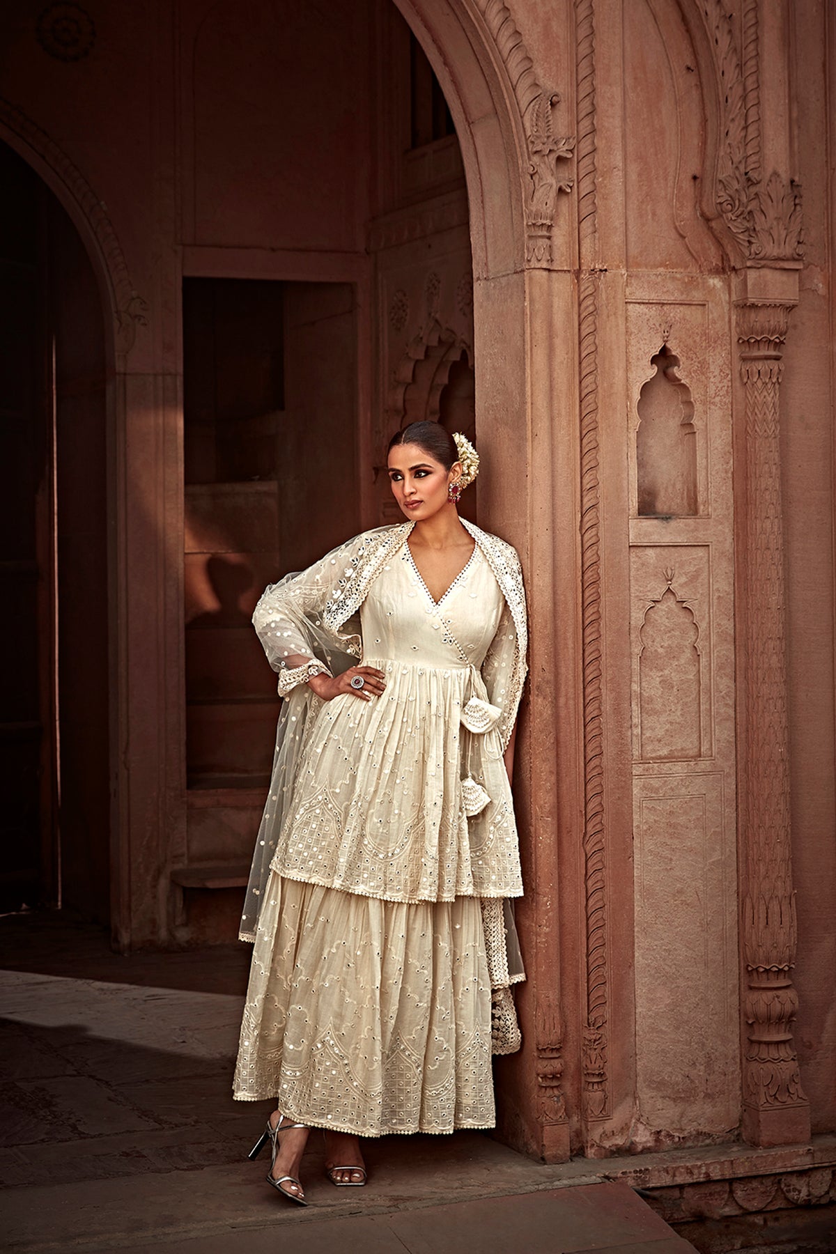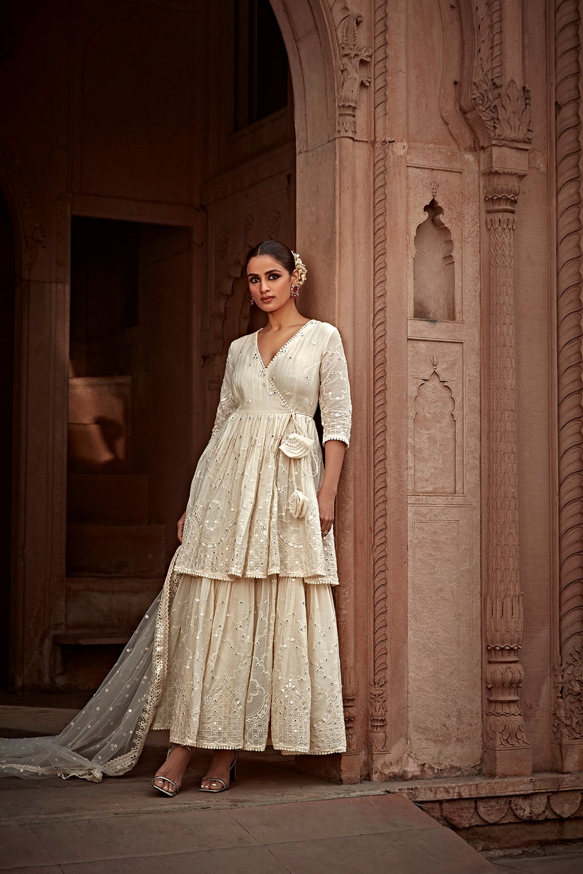 Fabric: Angrakha: Cotton Mulmul, Dupatta: Tule/Butterfly Net.
