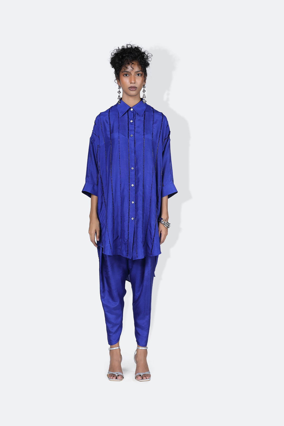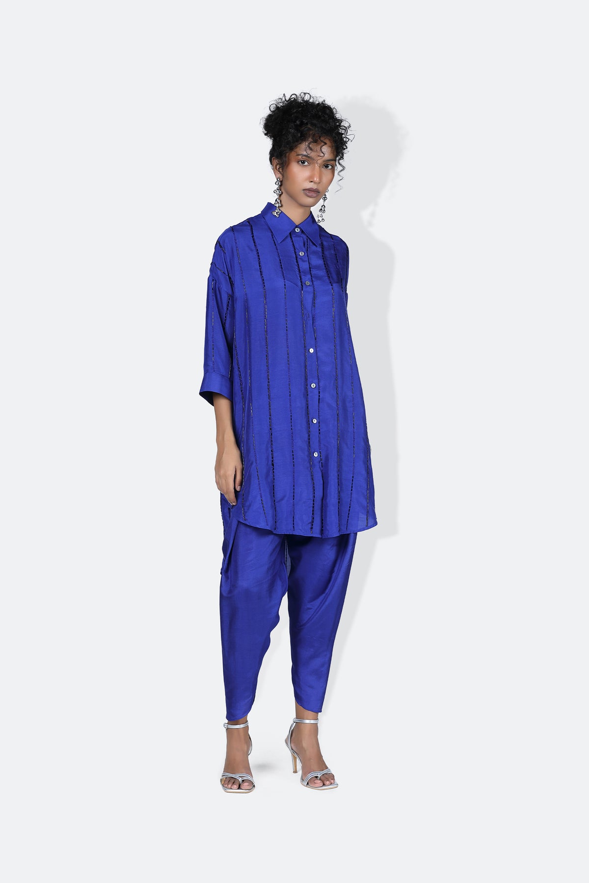 The sally pant is a take on our traditional indian salwar pants . The waist is elasticated from the back , its made in light weight silk fabric.