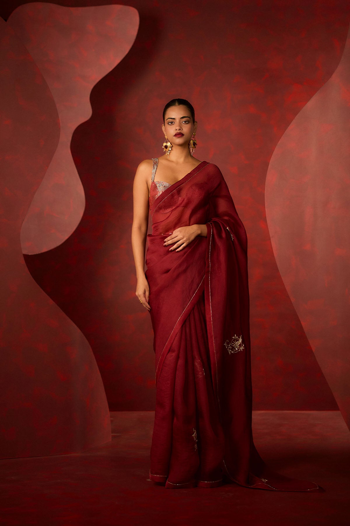 Ekaya The Midnight Kiss Saree in Maroon indian designer wear online shopping melange singapore
