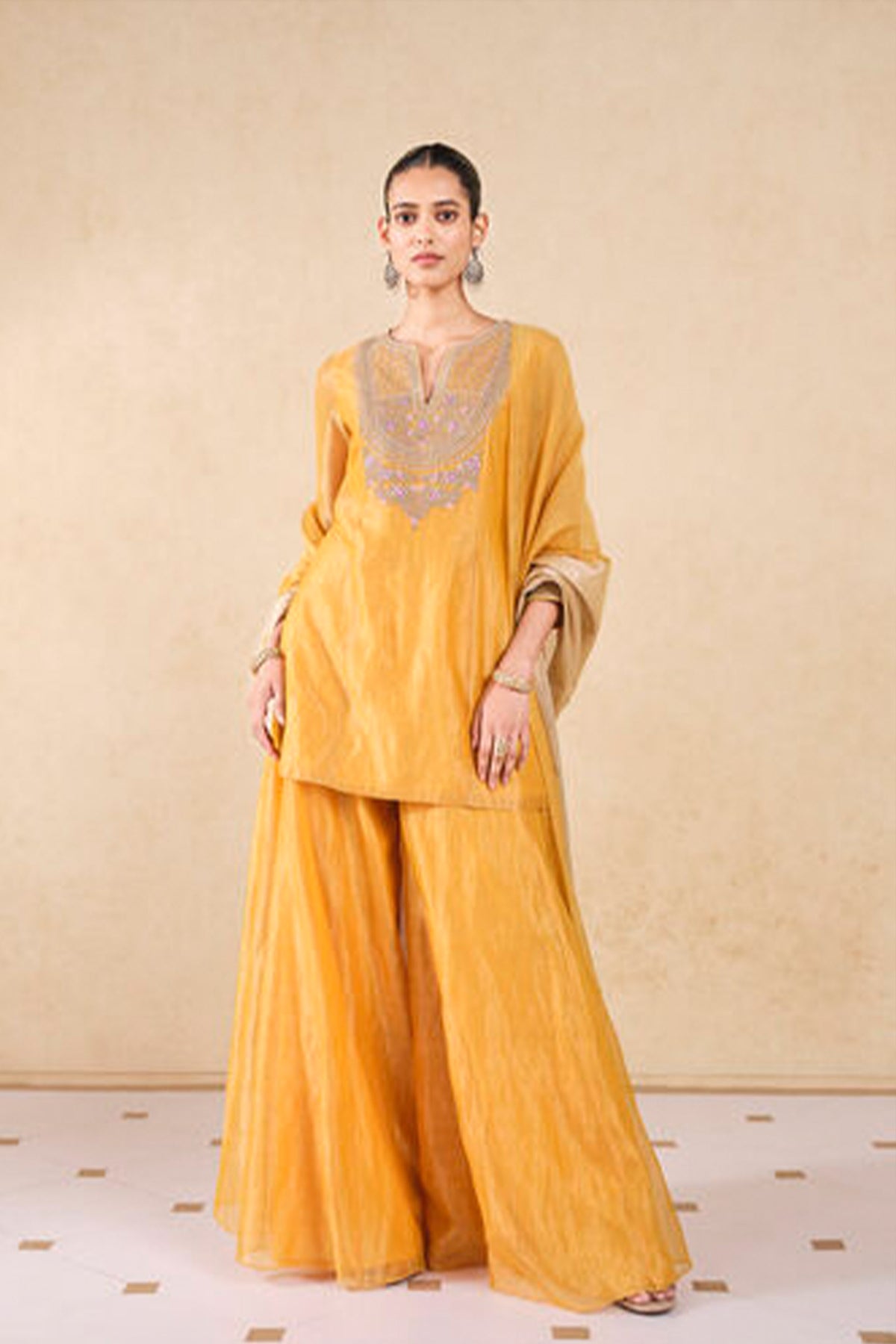 Measurements : Kurta - 32 Inches, Sharara - 42 Inches, Dupatta - 2,5 Mtrs