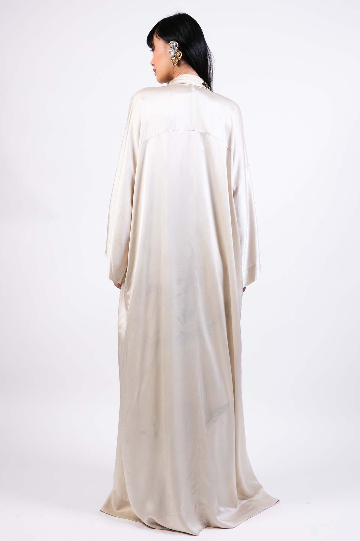 An embroidered long shirt jacket paired with a printed lungi skirt and crop top, this ak|ok ensemble is as comfortable as it is striking. A fusion of fluid design and bold storytelling, made to move with you.